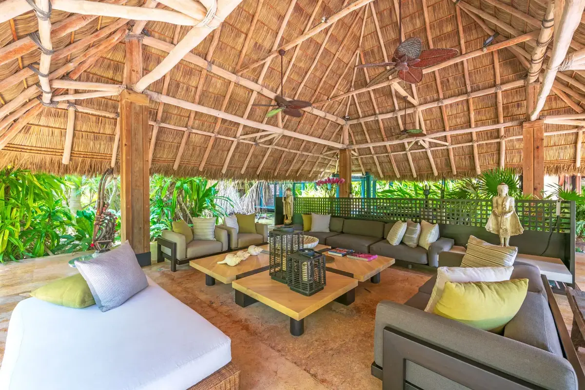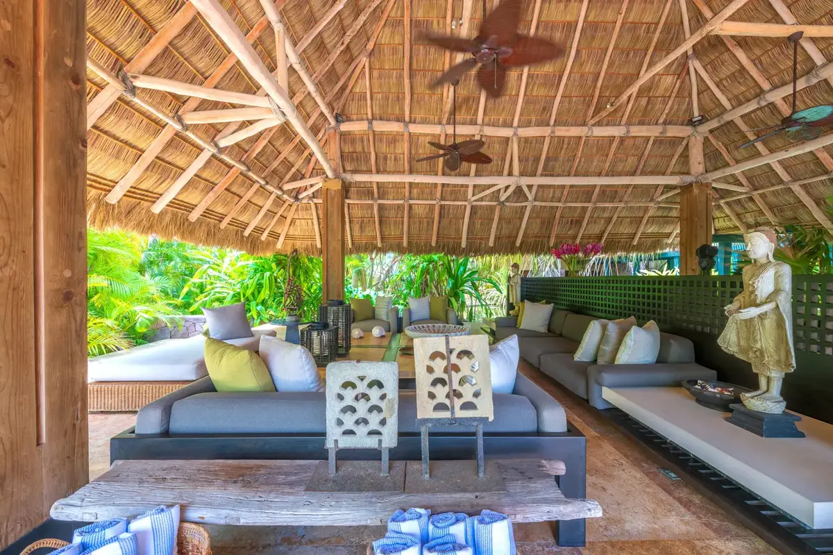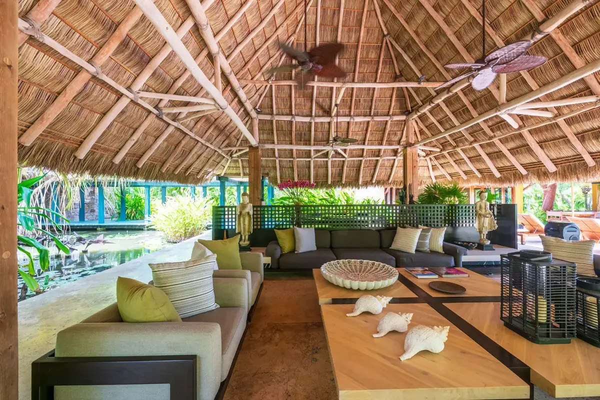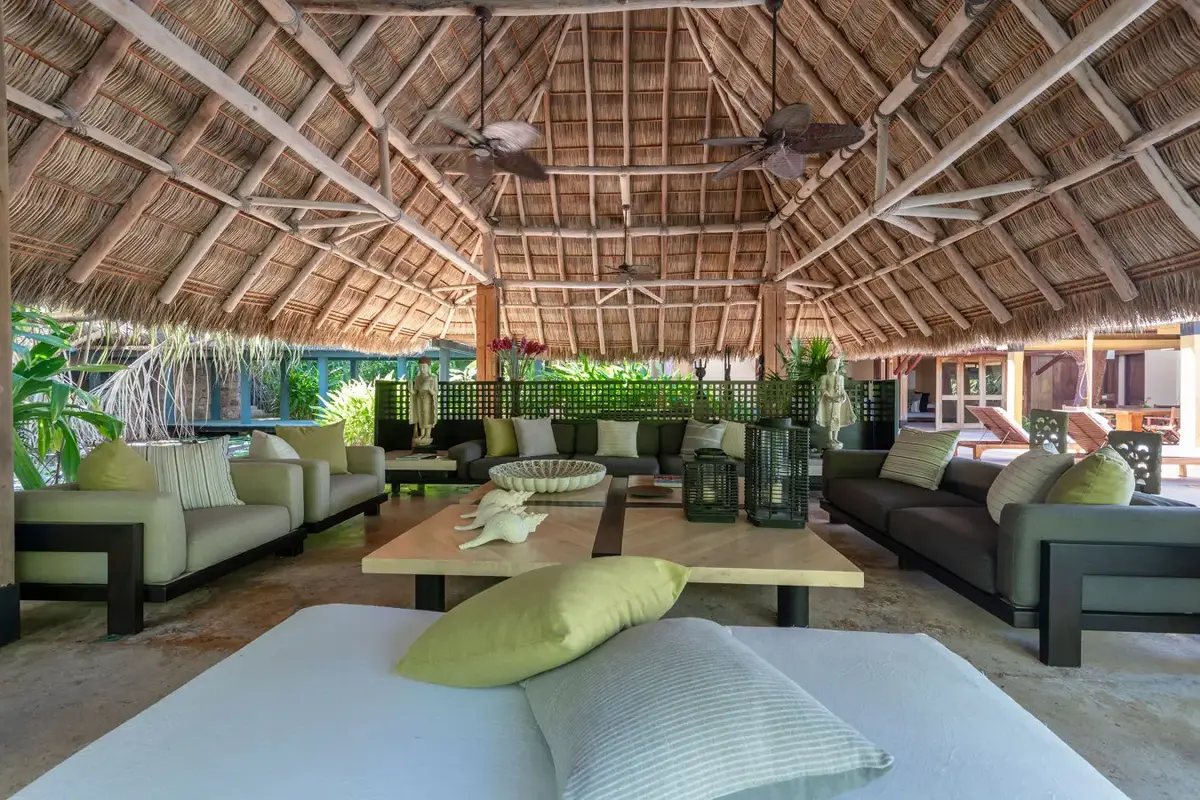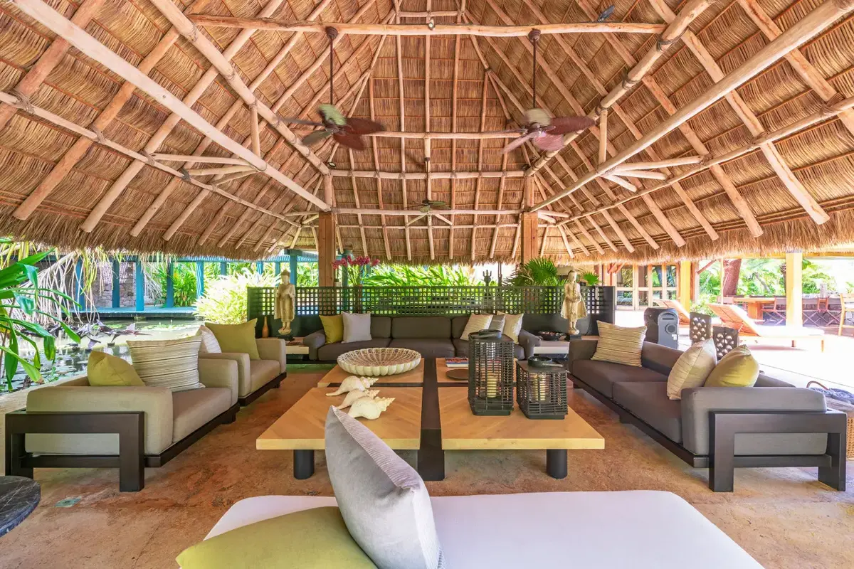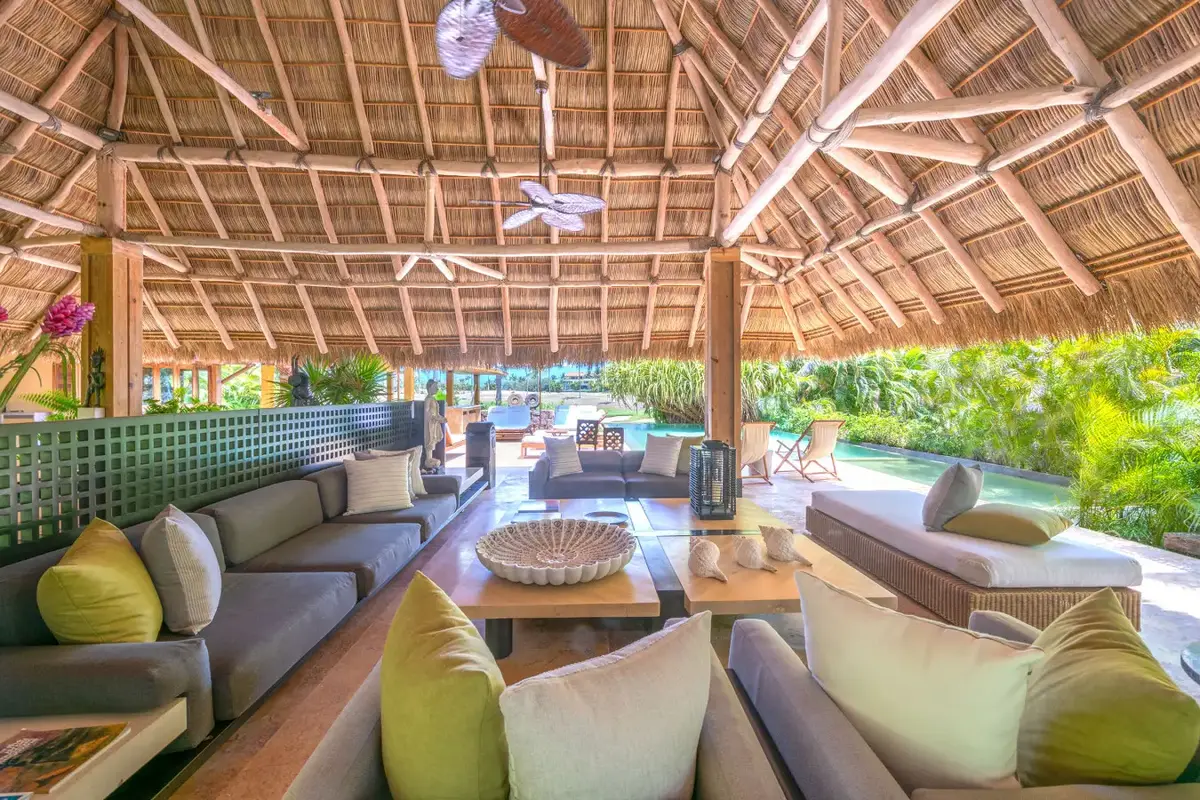 Discover architectural excellence at Air House Largo del Mar, an iconic oceanfront luxury villa in Punta Mita’s exclusive Lagos del Mar enclave. Designed by world-renowned architects Alfonso López Baz and Javier Calleja, this stunning 8,000 sq. ft. residence seamlessly blends natural wood, marble, and stone with traditional palm-thatched palapa roofs — creating a sophisticated harmony of Mexican heritage and contemporary elegance.