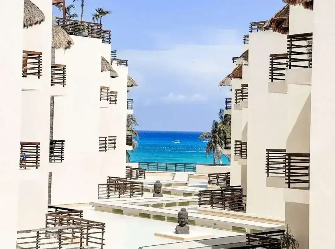 Aldea Thai is more than a condo — it’s a first-class escape where modern luxury meets the tranquility of the Mexican Caribbean. Gaze across shimmering waters toward Cozumel, relax on your private terrace with your own huge pool, or unwind in the rooftop sky bar with breathtaking views.