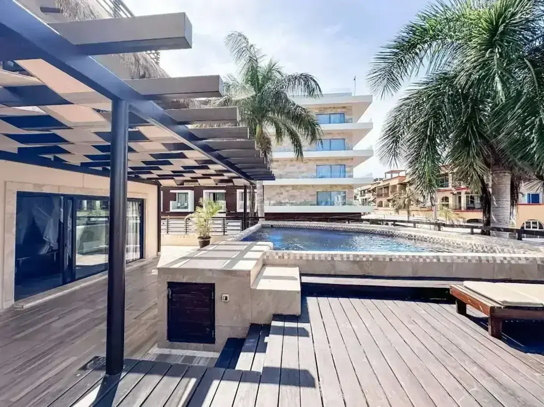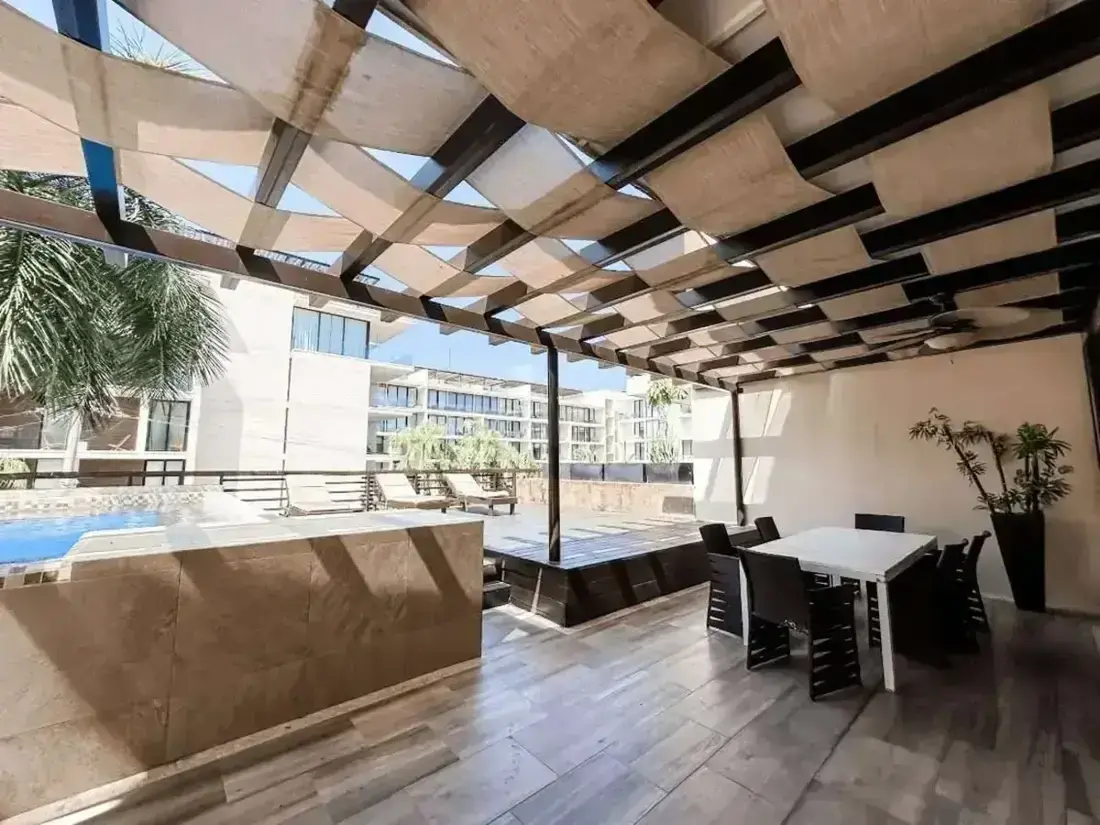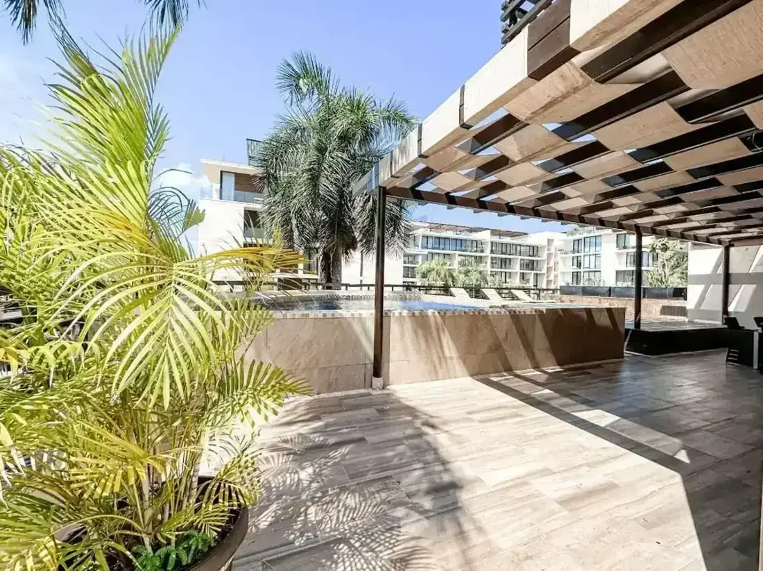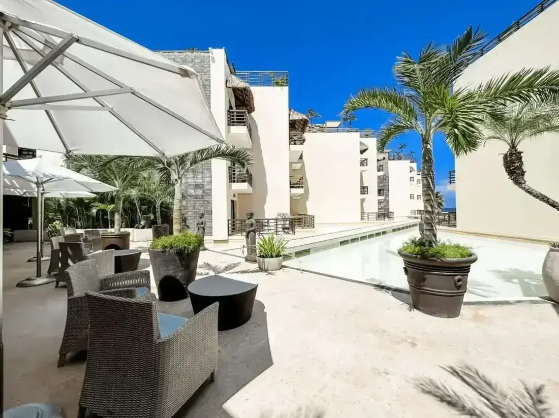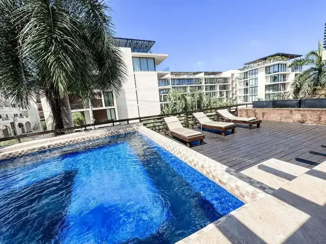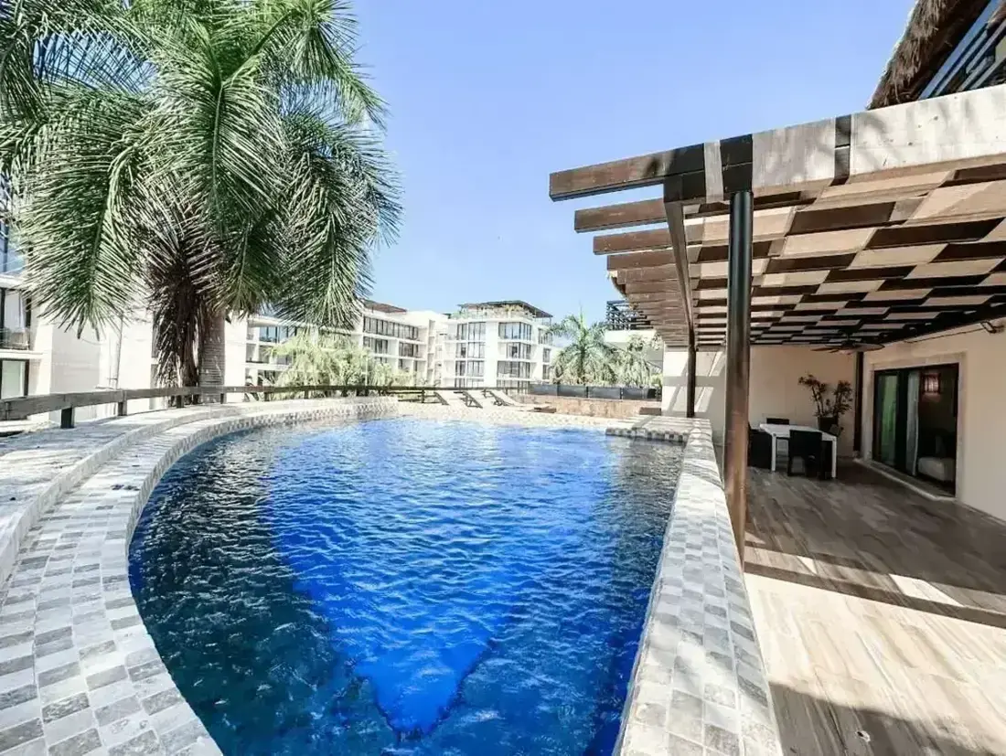 Experience the perfect fusion of Thai-Balinese elegance and Caribbean luxury at Aldea Thai Private Pool Playa del Carmen, a signature apartment in one of Playa del Carmen’s most desirable beachfront locations. Just 50 steps from the glamorous Mamitas and Kool Beach Clubs, this upscale residence blends sophisticated design with resort-style amenities — offering a private pool terrace, grand entrance, and access to a stunning infinity pool with bar and lounge chairs.