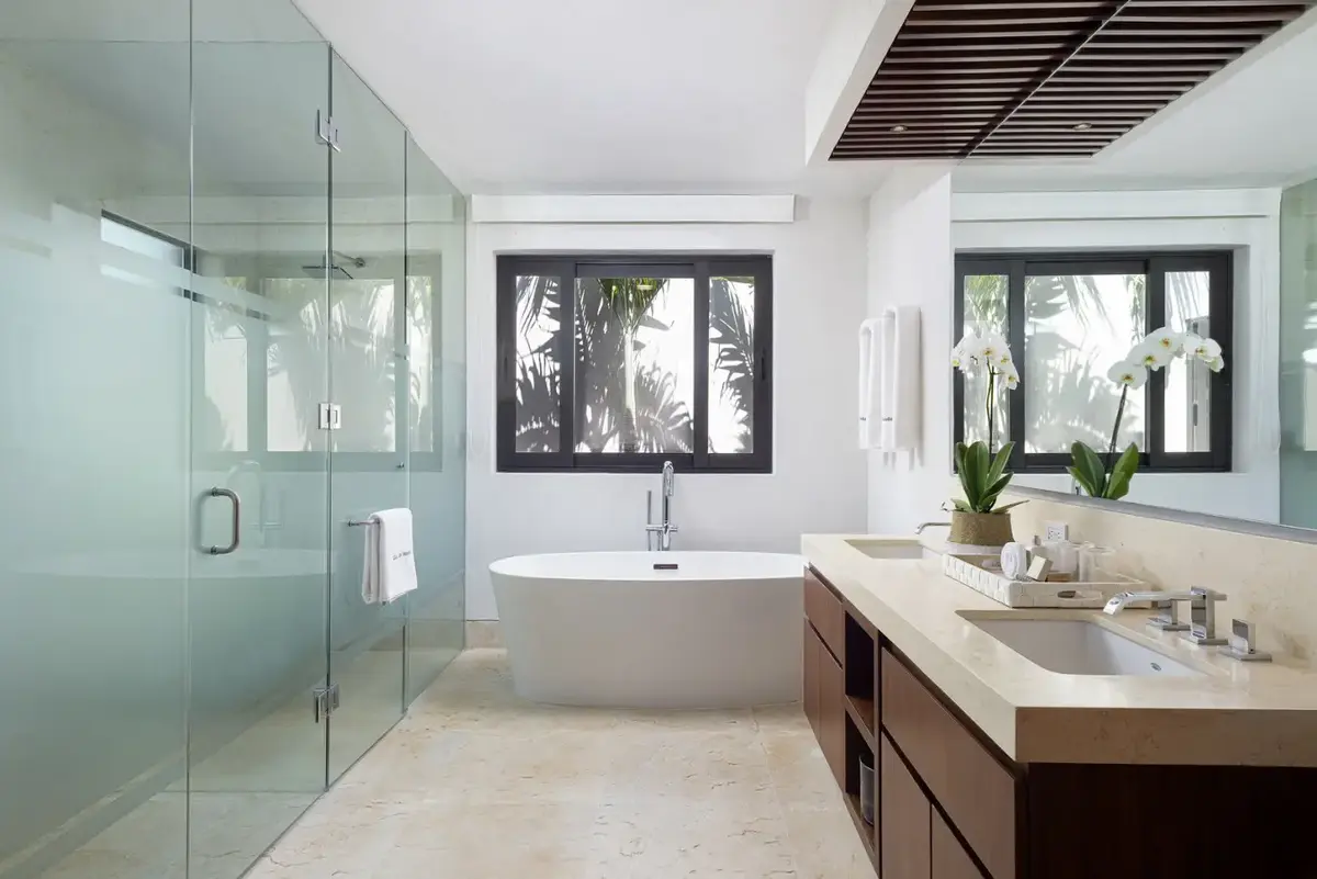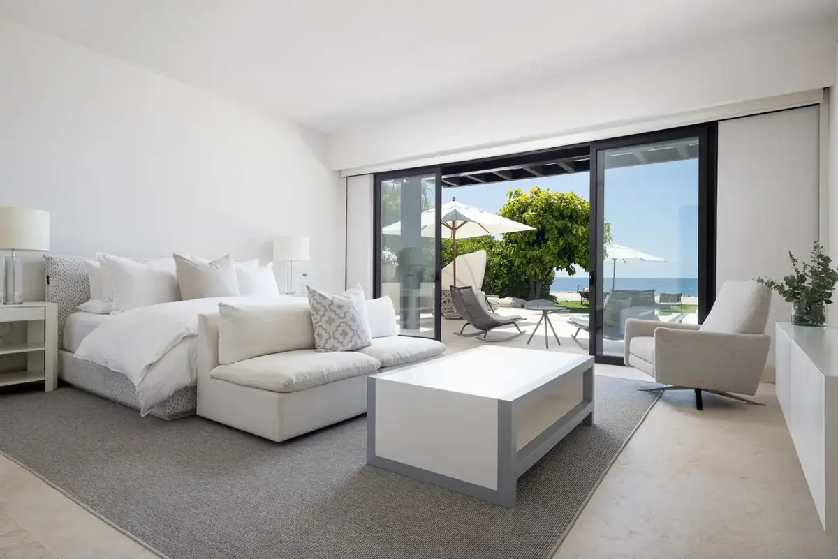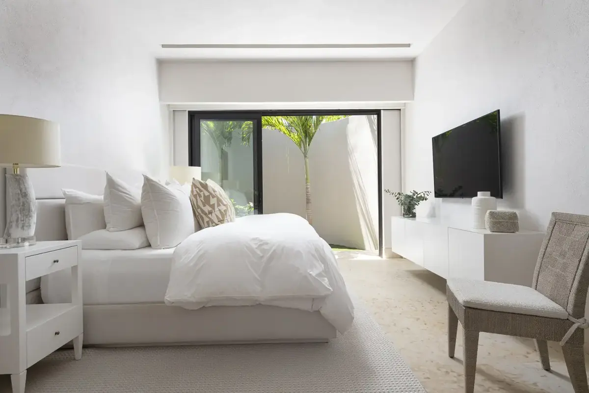 - Primary Suite – King bed, ocean view, private terrace access, spa-like bathroom