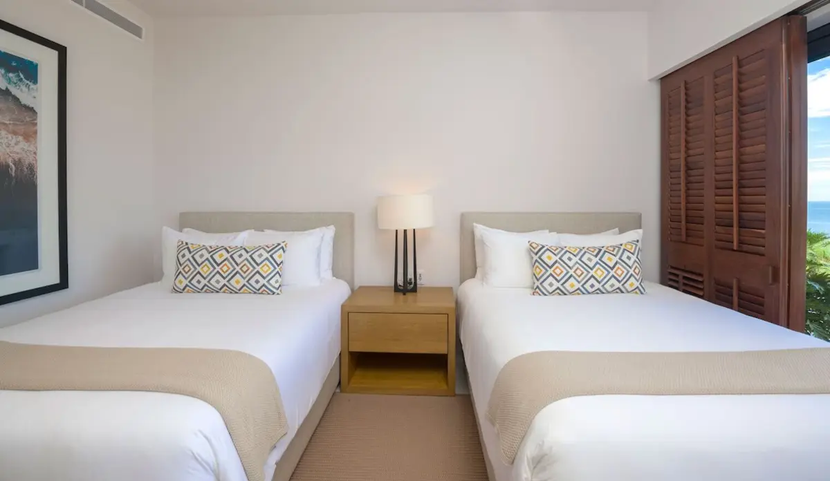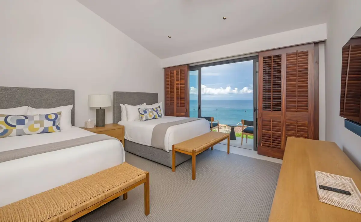 • Bedroom 2 – Two double beds, en-suite bathroom, private patio with ocean views