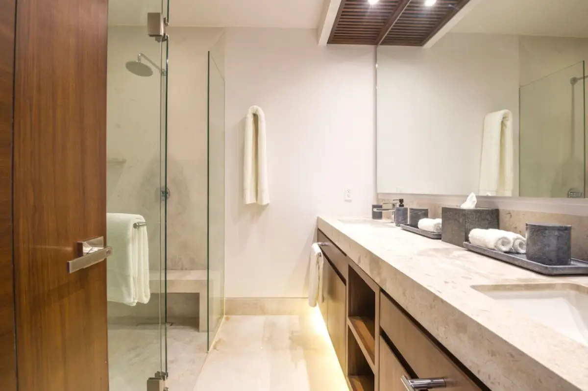 All bedrooms feature premium linens, air conditioning, smart TVs, and luxury toiletries: