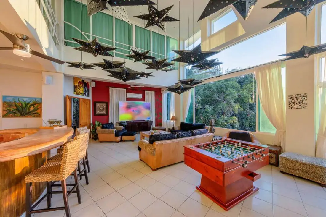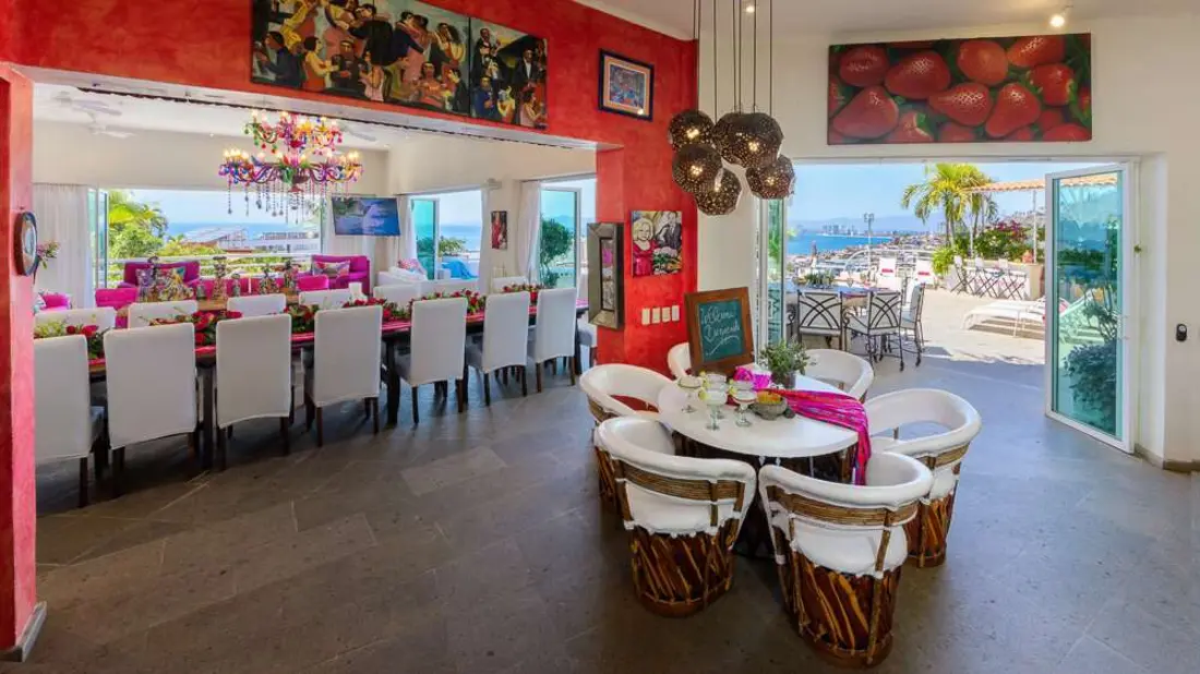 This extraordinary estate offers up to 14 spacious and uniquely themed bedrooms across seven levels, accommodating up to 34 guests in opulent comfort. Each suite blends contemporary luxury with vibrant Mexican influences, ensuring every guest enjoys a memorable stay. The villa’s open terraces, infinity pool, and panoramic views create a seamless connection to the beauty of Banderas Bay and the Sierra Madre Mountains.
