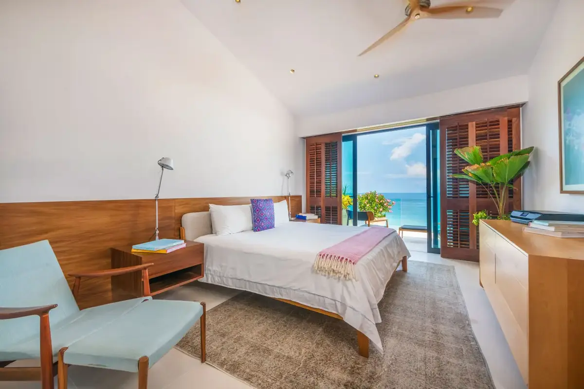 - Primary Suite – King-size bed, en-suite bathroom, ocean view, terrace access