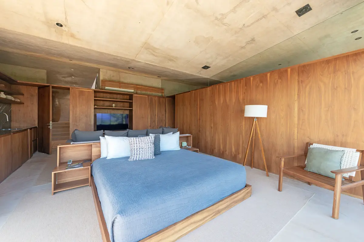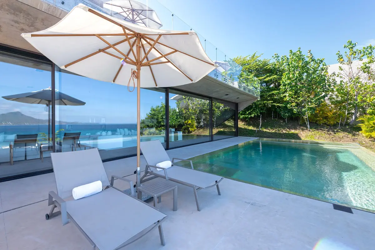 The Residence The villa’s interior is a study in modern coastal elegance, using neutral tones and natural textures to complement the tropical surroundings. The gourmet chef’s kitchen—complete with high-end appliances and an oversized island—is the heart of the home, perfect for morning coffee or hosting a private culinary experience. Outside, the sprawling terrace features alfresco dining, plush loungers, and a fire pit area for watching the sunset over the bay.