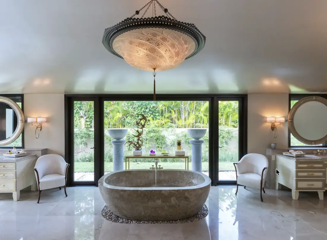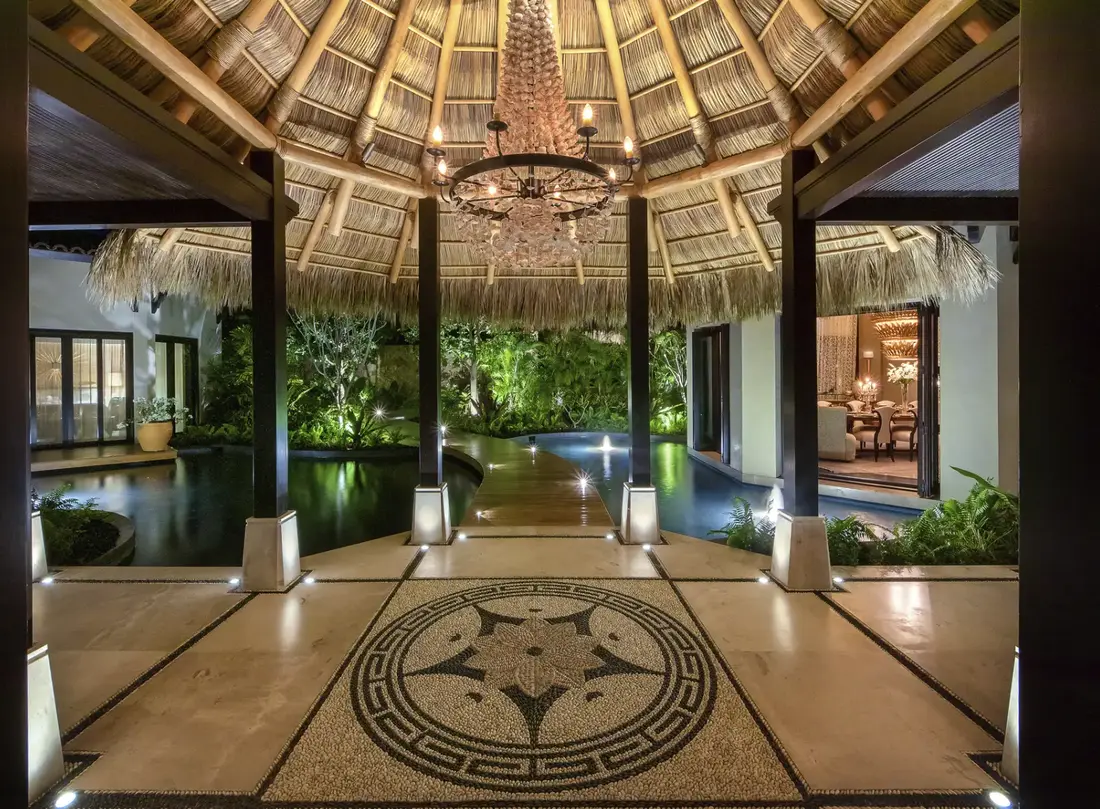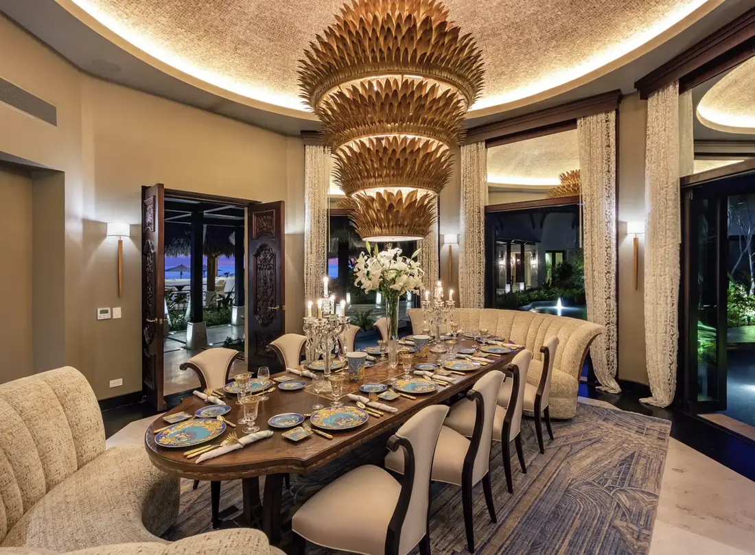 The Residence Designed for the most discerning world travelers, the estate features a dramatic open-air floor plan that merges grand social areas with intimate private retreats. The social hub includes a professional-grade kitchen, a spectacular Great Room, and the “Cava”—a premier entertainment venue featuring a wine cellar, an 18-foot shuffleboard table, and a FullSwing™ golf simulator. Outside, the property is surrounded by lush tropical gardens, reflecting pools, and expansive terraces designed for both royalty and celebrity-level privacy.