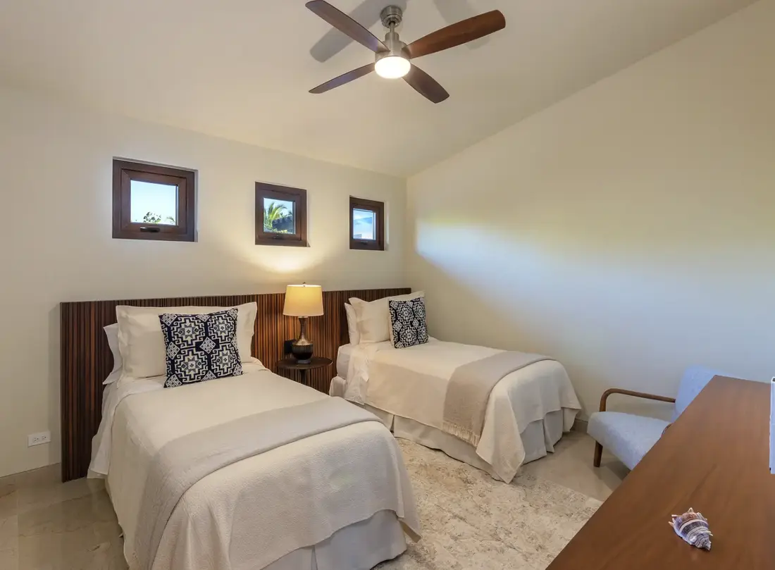 Bedroom Configuration The estate’s seven guest suites are sequestered away from the main living areas to ensure total seclusion. All rooms feature Avocado® green mattresses, Peacock Alley® linens, and L’Occitane® amenities: