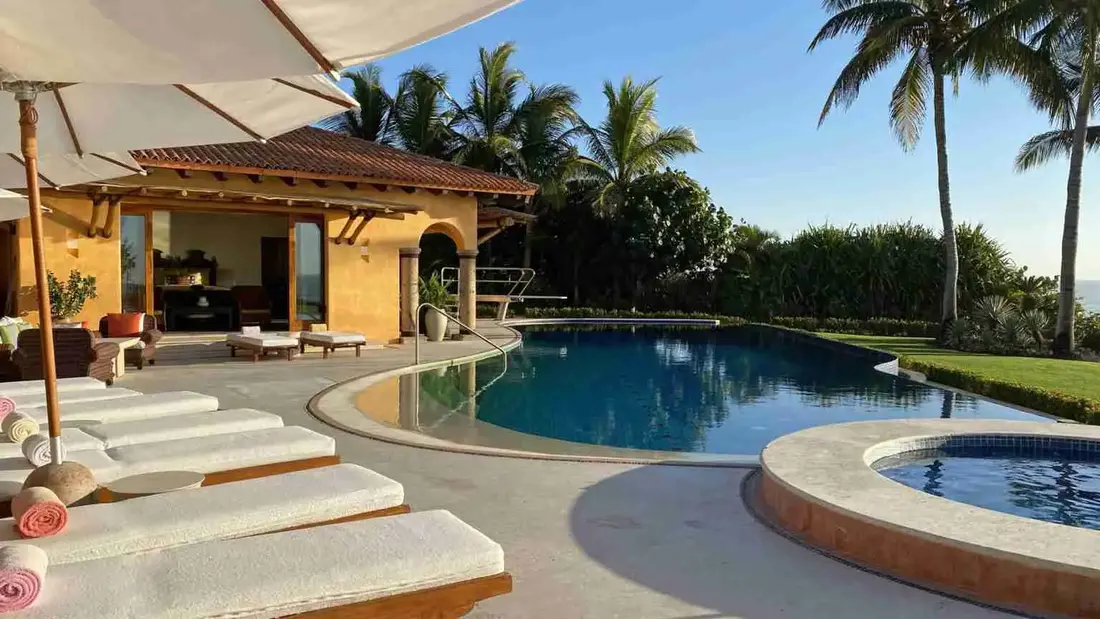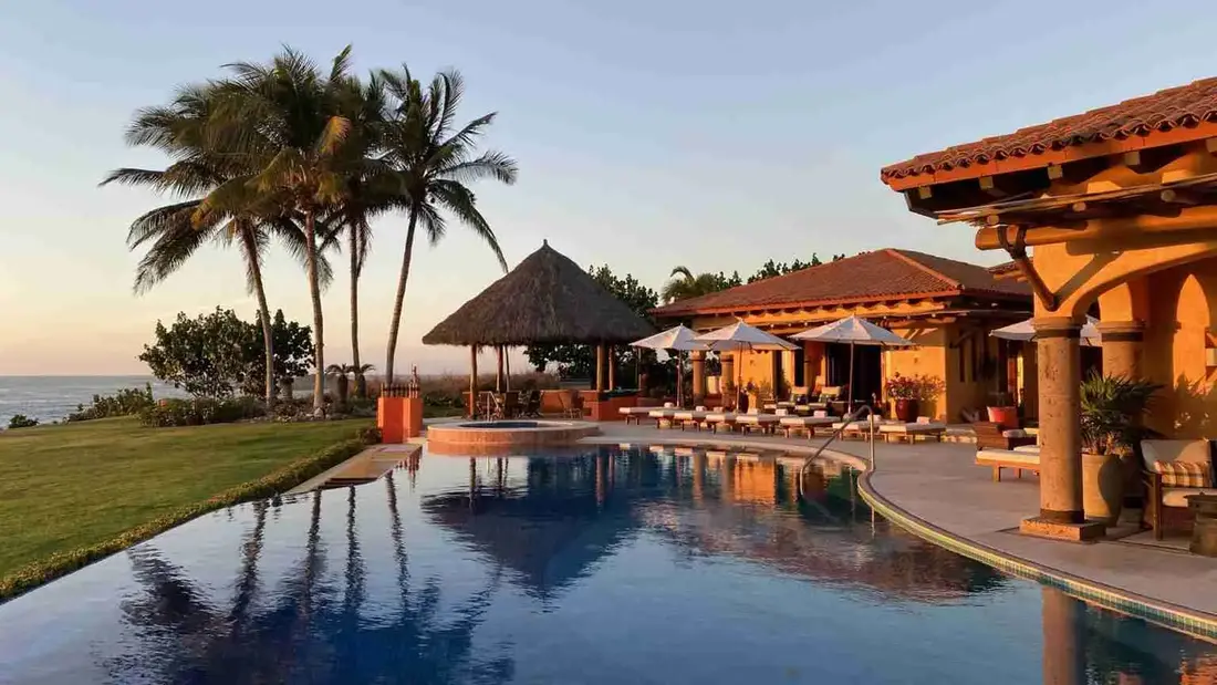 Discover a level of grandeur unparalleled in the Riviera Nayarit at Estate Casas. This sprawling 20,000-square-foot oceanfront sanctuary is the culmination of years of design, blending the elegance of a private museum with the warmth of a family home. Located within the ultra-secure gates of the Four Seasons and St. Regis resort community, the estate reveals its beauty through intricate handcrafted stonework, soaring pergolas, and a “wrap-around” staff pathway system designed to provide seamless five-star service while preserving total guest privacy.