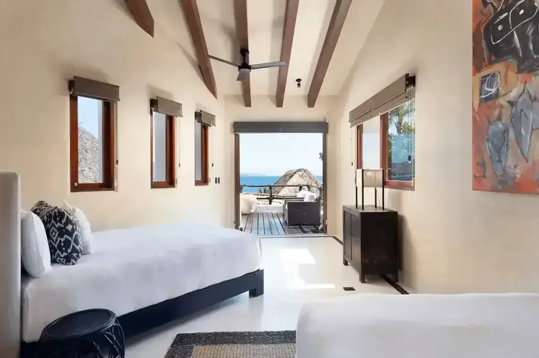 - La Playa Bedroom – 2 Queens, ocean-view terrace, half bath