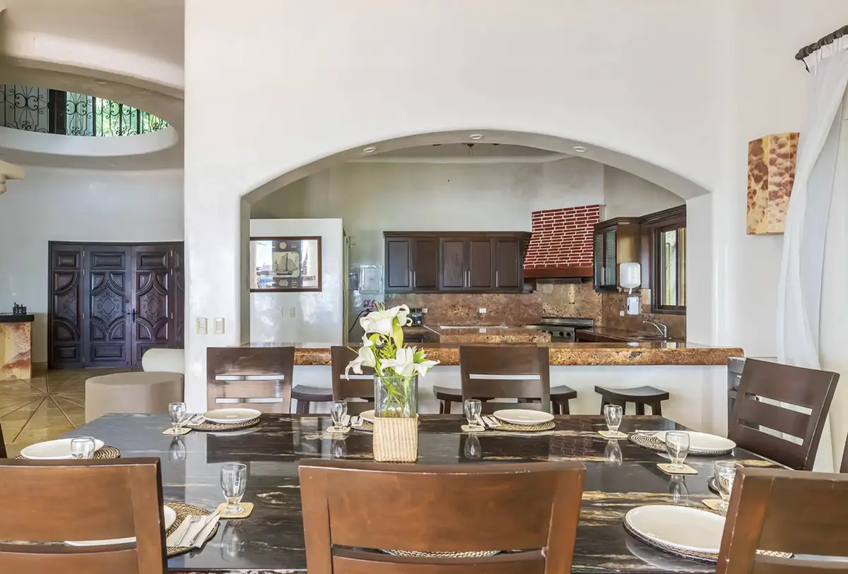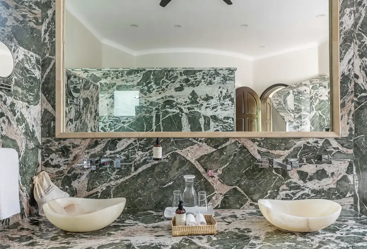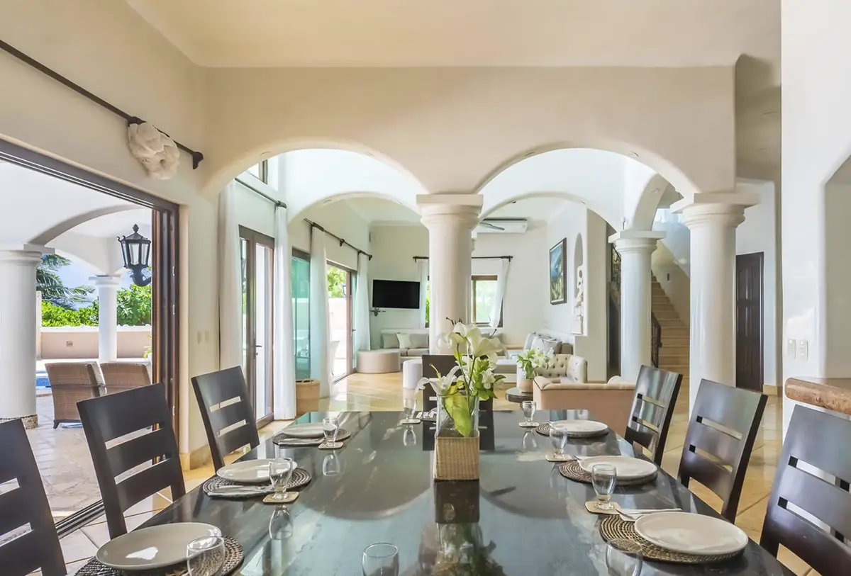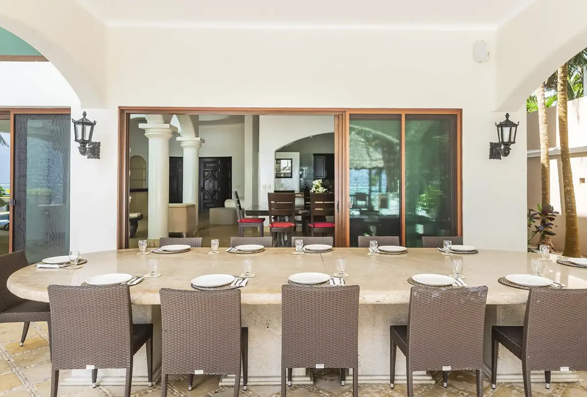 The villa’s expansive layout wraps around a central pool and garden courtyard, creating a large, fully private oasis for relaxation and gatherings. With 8 sumptuous bedrooms in the main hacienda (7 with king-size beds) and two additional suites in a separate guest house, Hacienda Soliman comfortably accommodates up to 24 guests — making it ideal for large family vacations, group getaways, wellness retreats, or milestone celebrations.