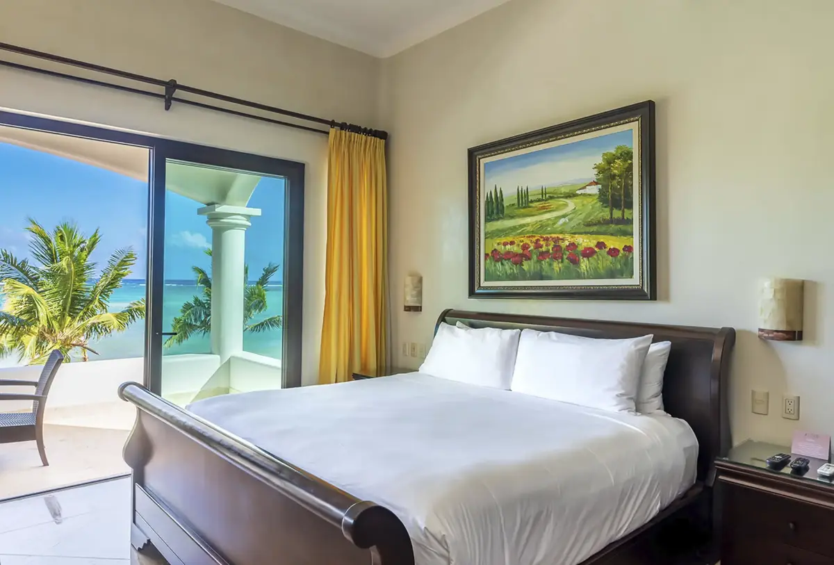 Master Bedroom – King-size bed, ensuite bathroom with tub & shower, ocean views with private terrace