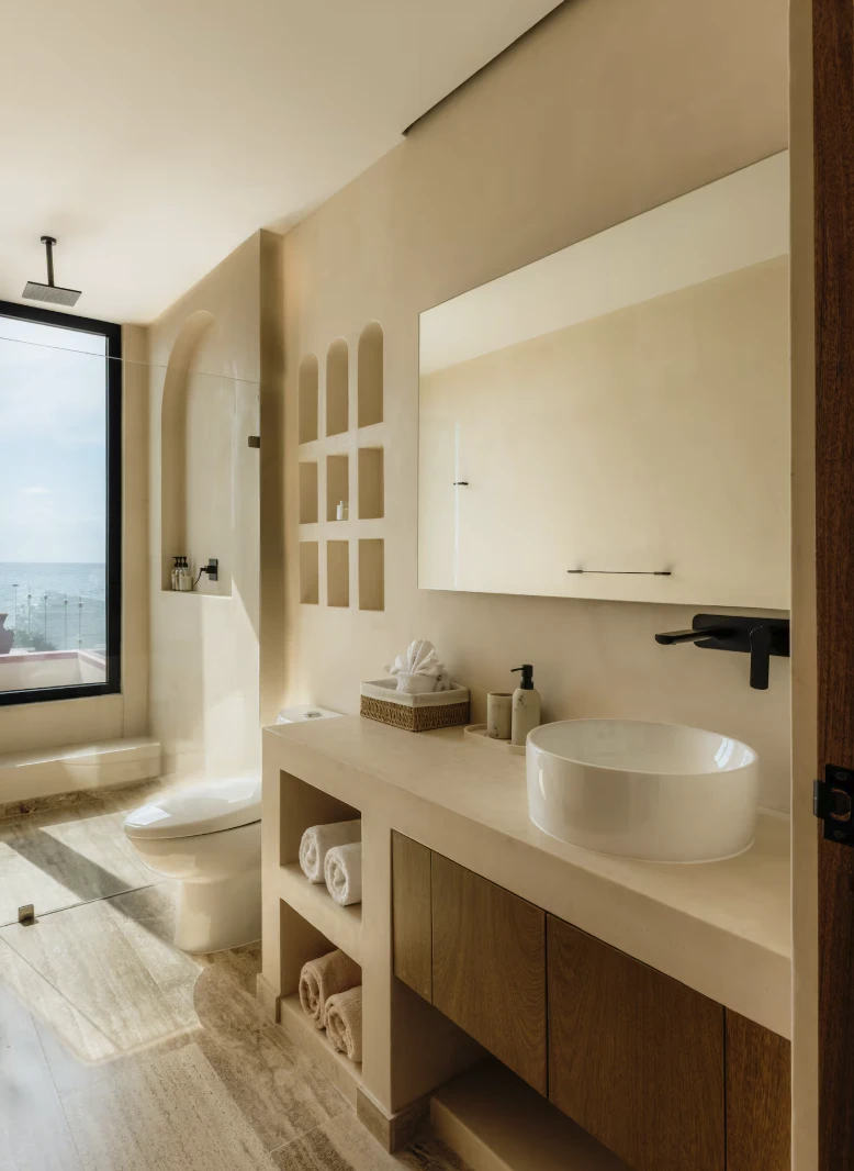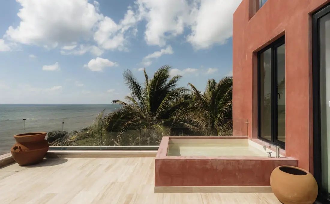 Wake to the soothing rhythm of waves, relax in the stunning 25-meter private pool, or practice yoga on the cliffside terrace with endless ocean vistas. Double-height living spaces with panoramic floor-to-ceiling windows flood the villa with natural light and Caribbean breezes, while multiple rooftop terraces provide elevated spots for sunset cocktails, stargazing, or simply soaking in the beauty of the Riviera Maya.