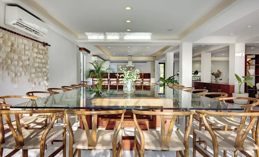 The open-concept living and dining area serves as the true heart of the home, welcoming everyone to gather, cook, relax, watch TV, or simply enjoy each other’s company after a day of sun and sand. Step outside to generous outdoor dining spaces, a huge plunge pool, and oceanfront lounging areas — perfect for group events like afternoon lunches, evening BBQs, sunset cocktails, or simply soaking in the endless Caribbean horizon.