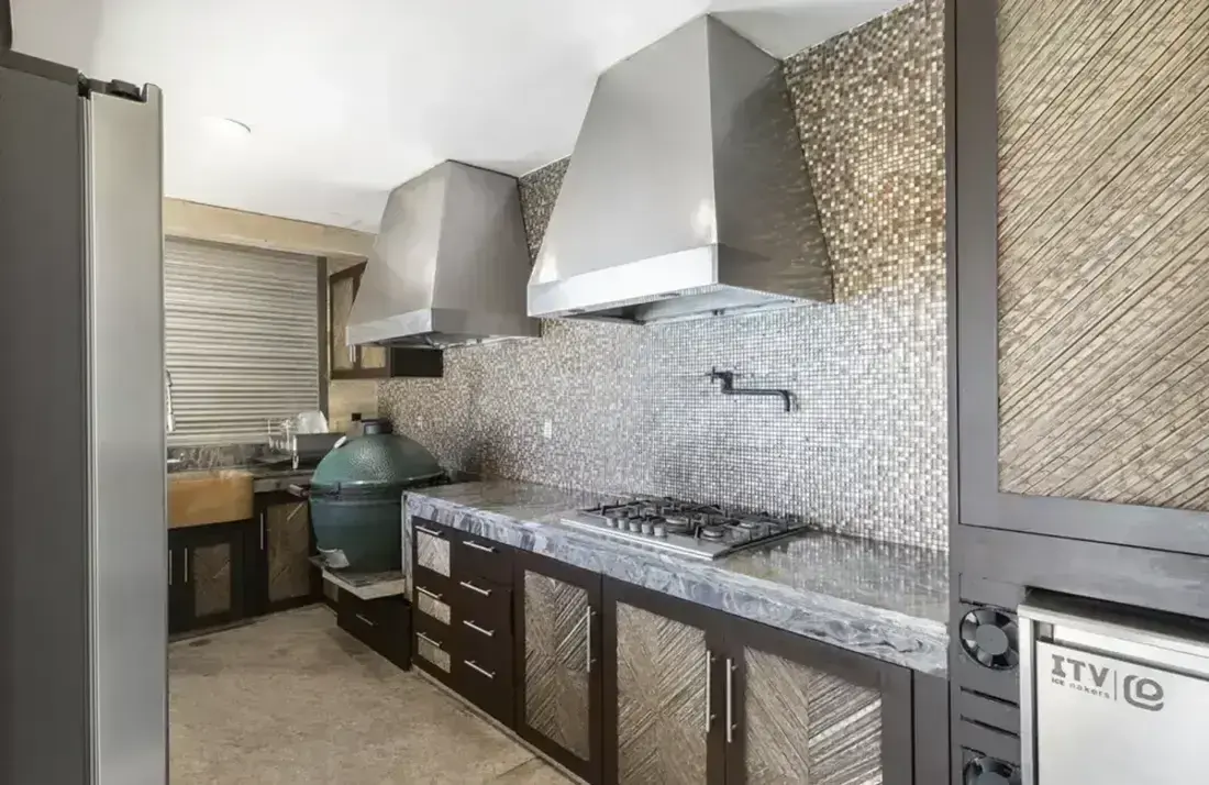 - Beachfront palapa with bar, full outdoor kitchen, grill & alfresco dining