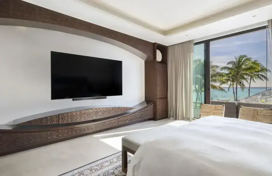 - Bedroom 3 (First Floor) – Queen bed, tub + shower, electric curtains, mini-fridge, safe, ocean view
