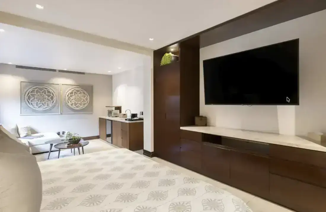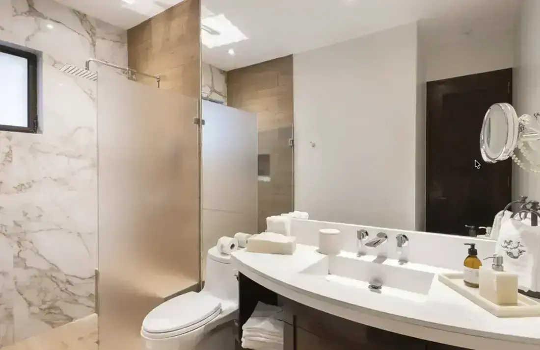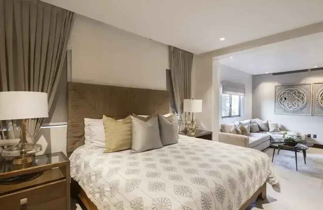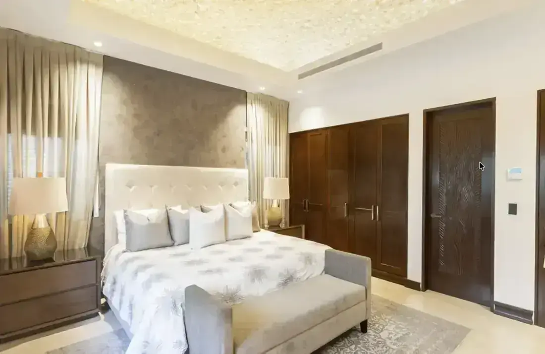 - Bedroom 7 (Ground Floor) – King bed, walk-in closet, dual vanity, electric curtains, tub + shower