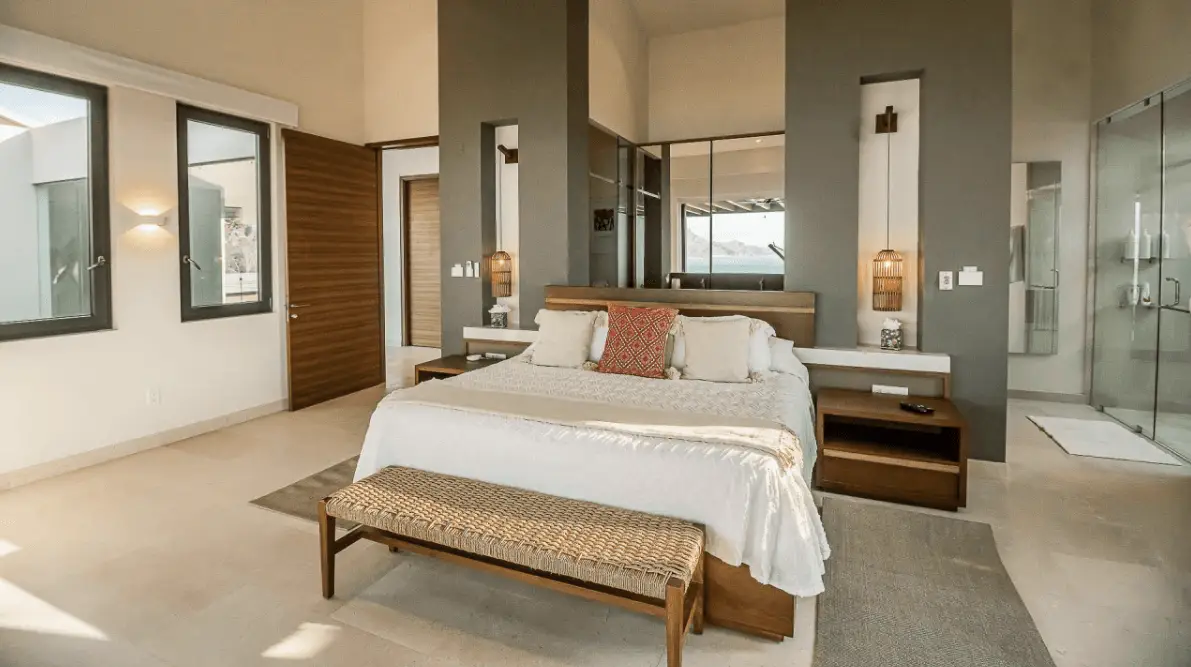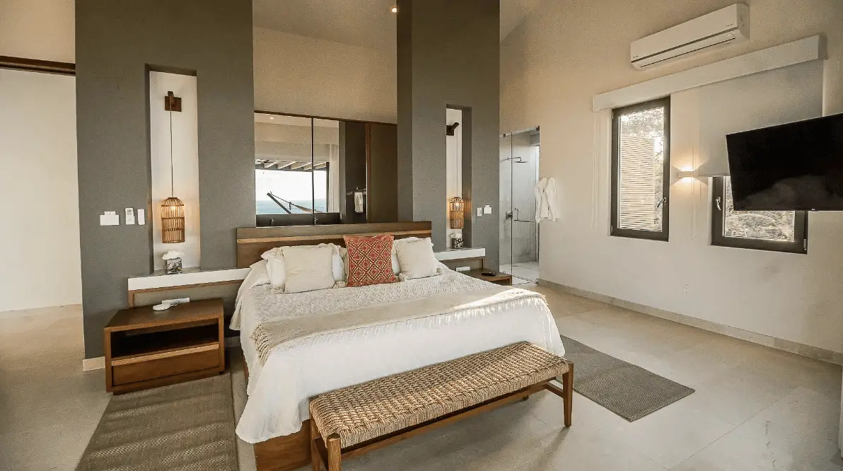Bedroom 1: King-size bed with ocean vistas and private en-suite.