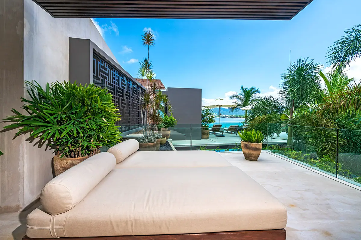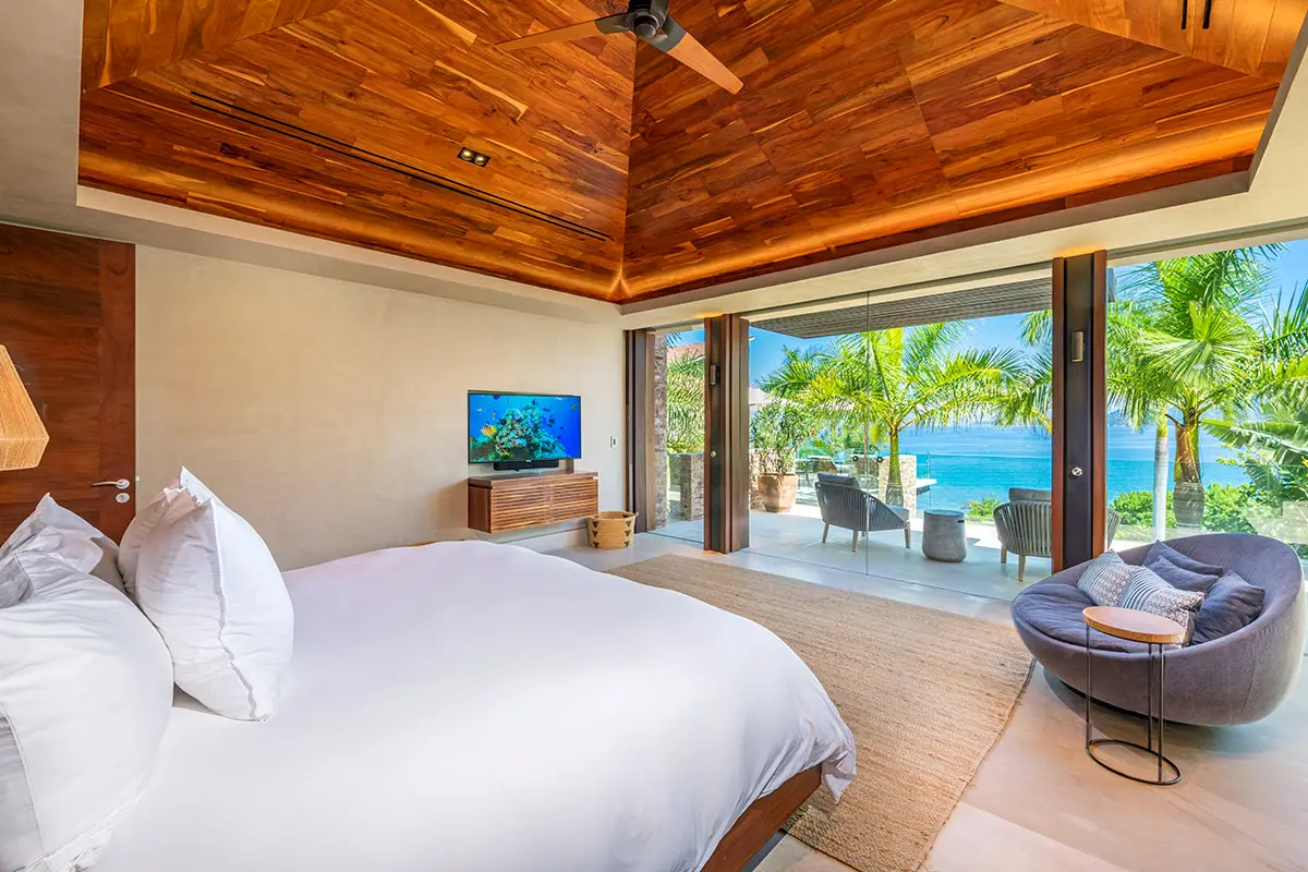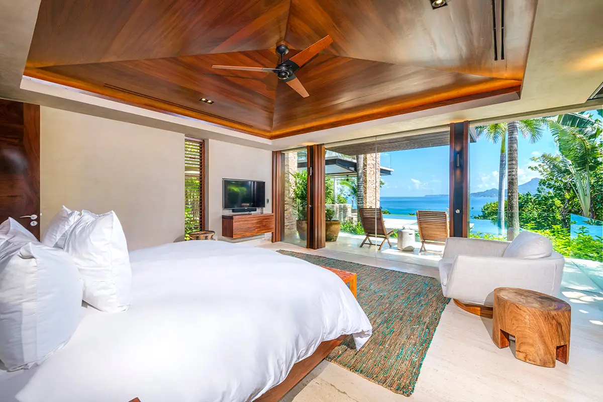 Bedroom 4: King bed, private ocean-view terrace with outdoor bathtub and en-suite.