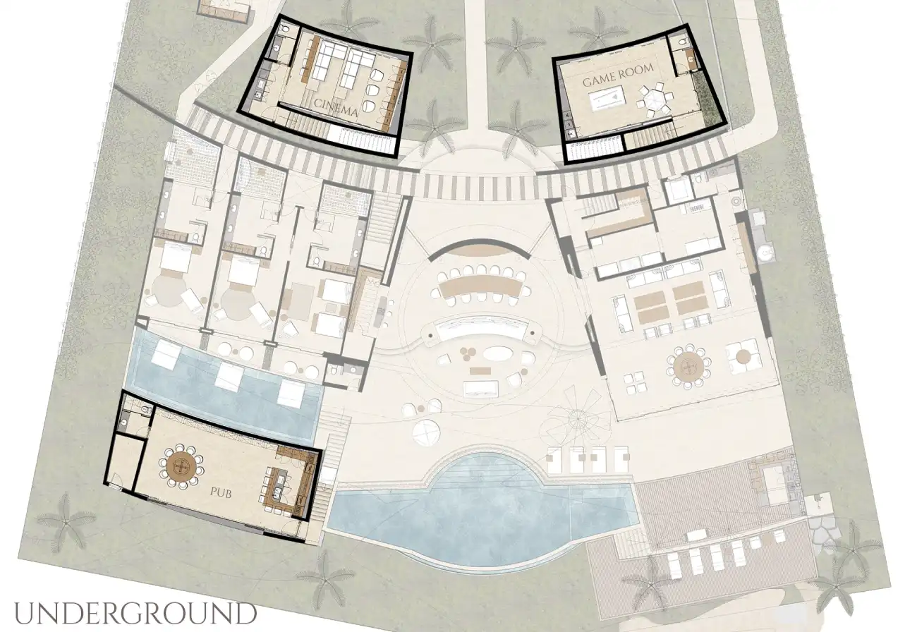 The Residence The open-concept layout is an architectural triumph, where the indoor living and dining areas merge seamlessly with the outdoor infinity pool deck. The gourmet kitchen and wet bar are designed for high-end entertaining, while the media room serves as a private cinema for the ultimate movie night. For those seeking rejuvenation, the dedicated spa and gym facilities allow for a full wellness retreat without ever leaving the security of the gated estate.