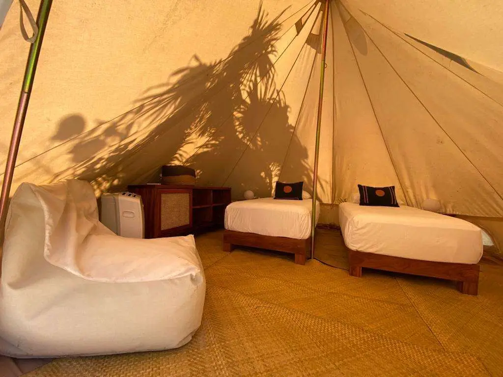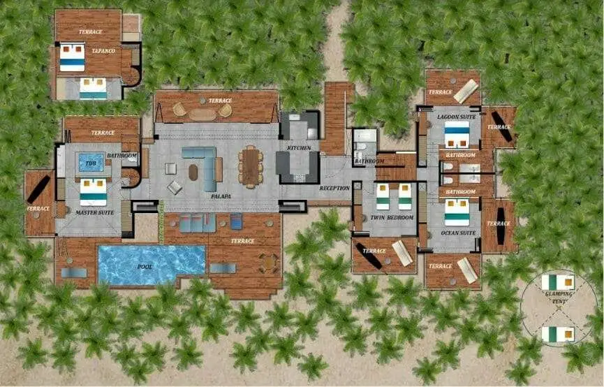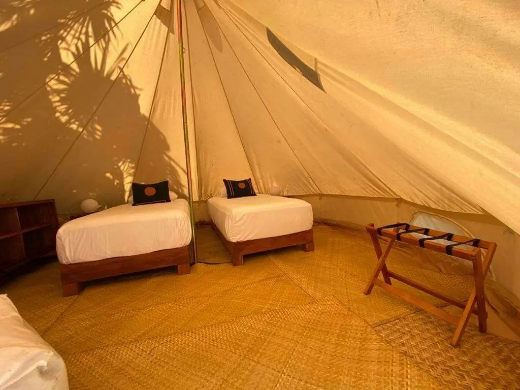 Please note that guests 11 and 12 accommodation will be a glamping tent on the beach which can be set up as a King or twin