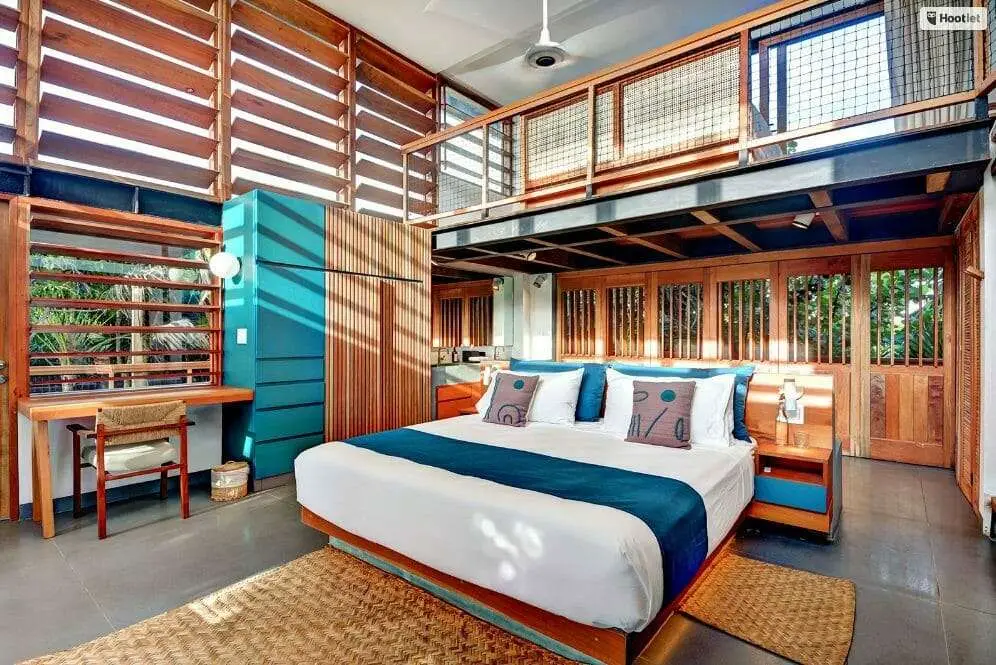 King-size bed, Queen-sized bed on the upper level, Double height ceiling, Hot tub, Ocean view, Private balcony, Wifi access