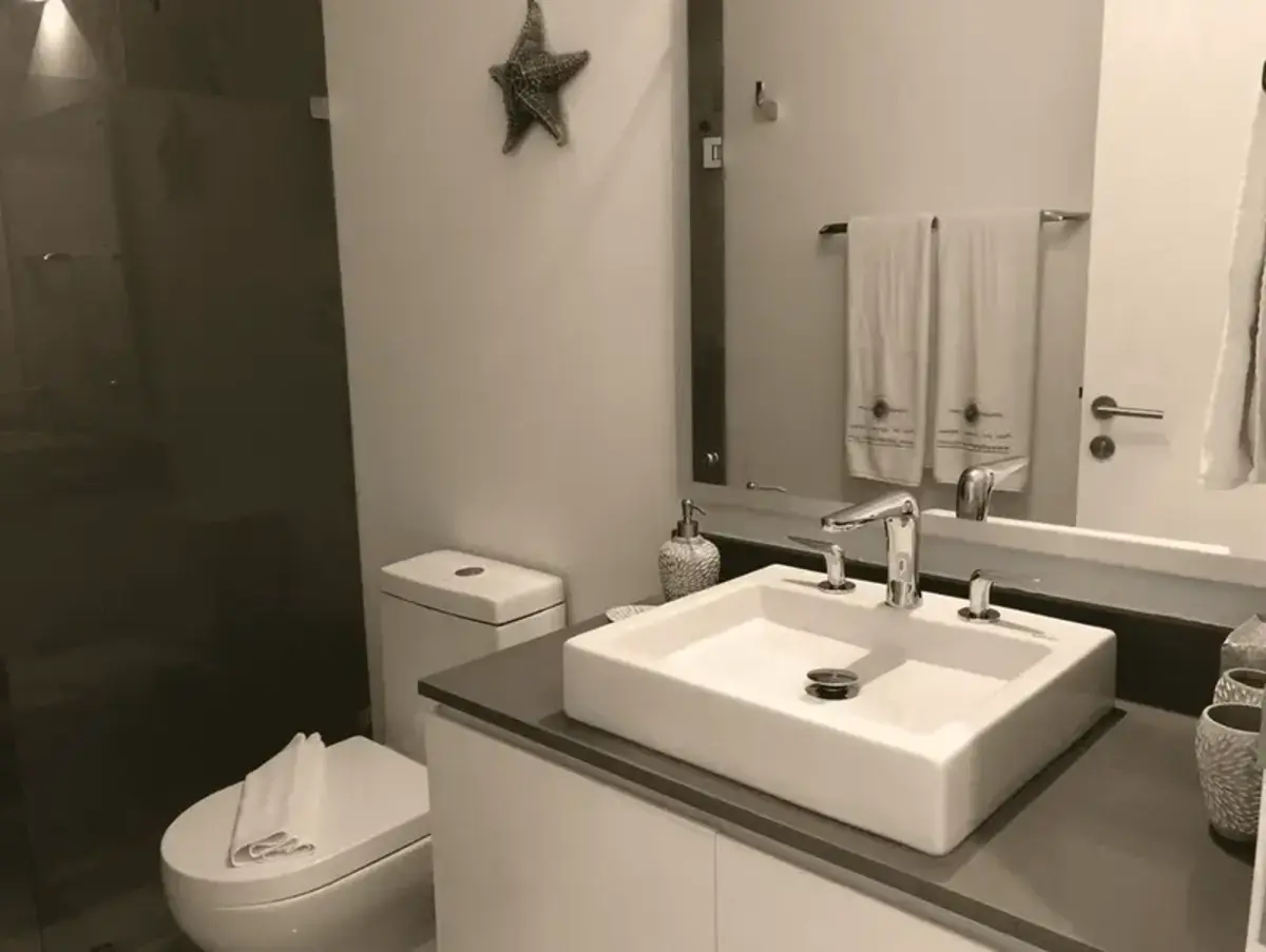 This elegant apartment features two immaculate bedrooms, each with its own en-suite bathroom, perfect for two couples or a small family. Air-conditioned comfort, ceiling fans, luxurious 1500-thread-count sheets, ultra-soft high-quality duvets, and blackout curtains ensure restful nights. Families with little ones will appreciate the baby package available upon request (crib, high chair, bathtub, toys).
