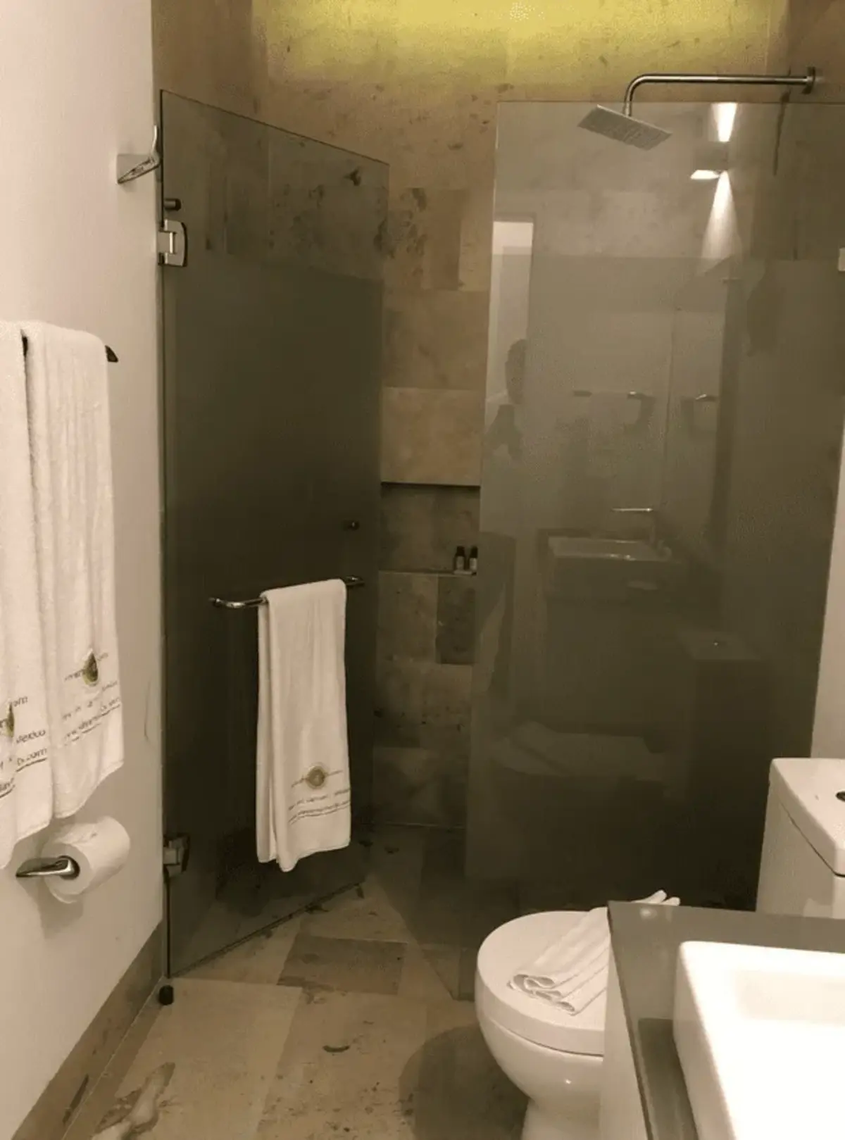 - Vert de Terres eco-friendly bath amenities (body lotion, shampoo, conditioner, shower gel)
