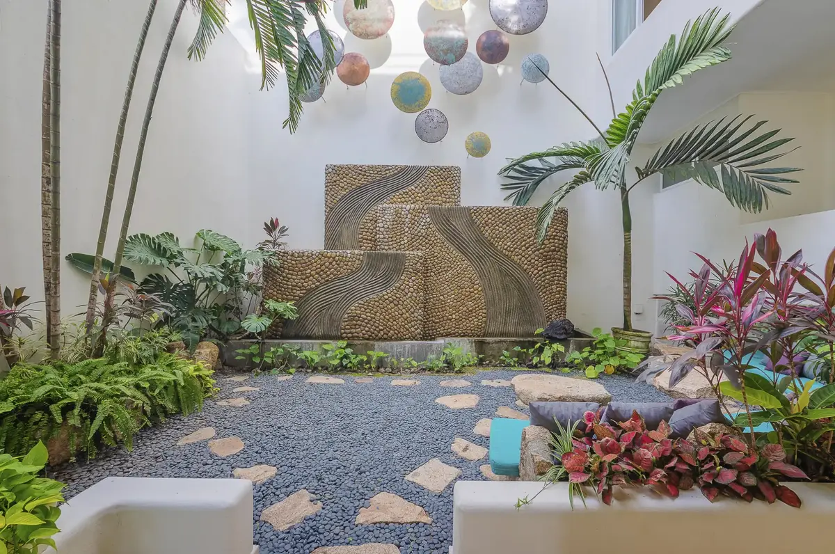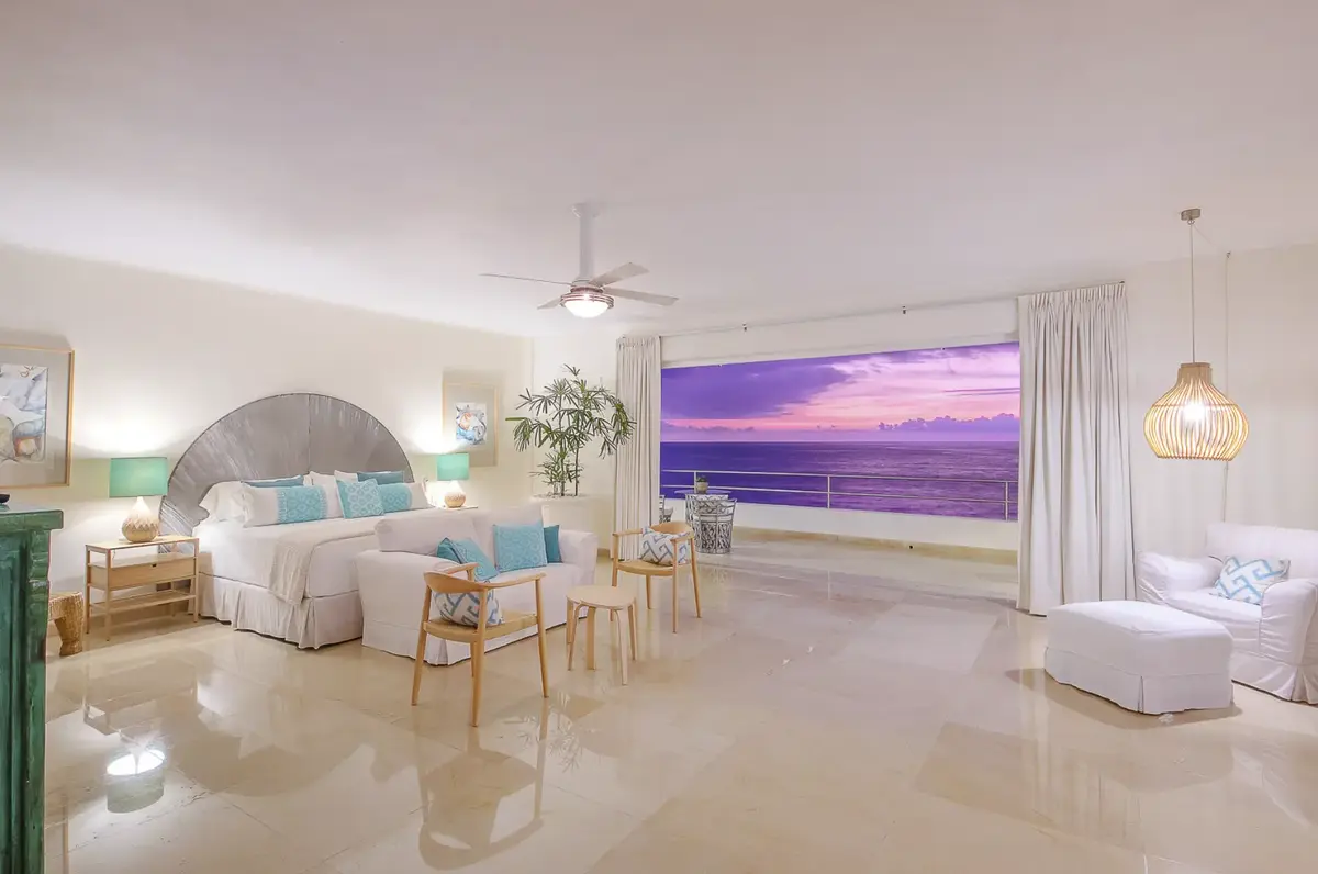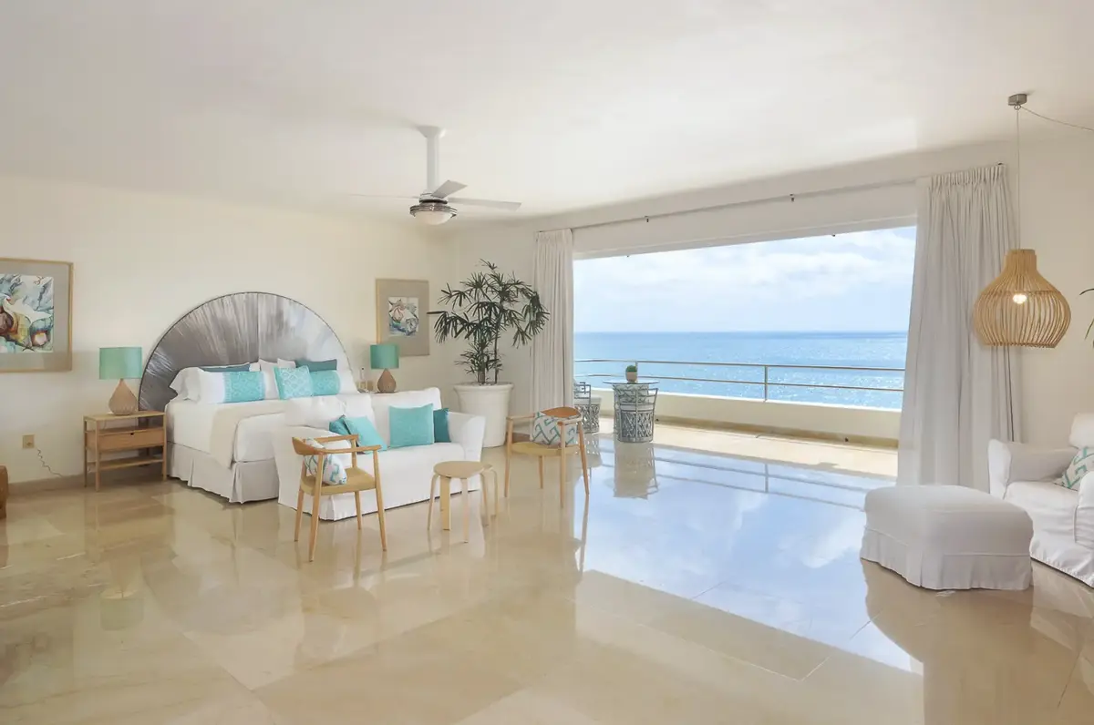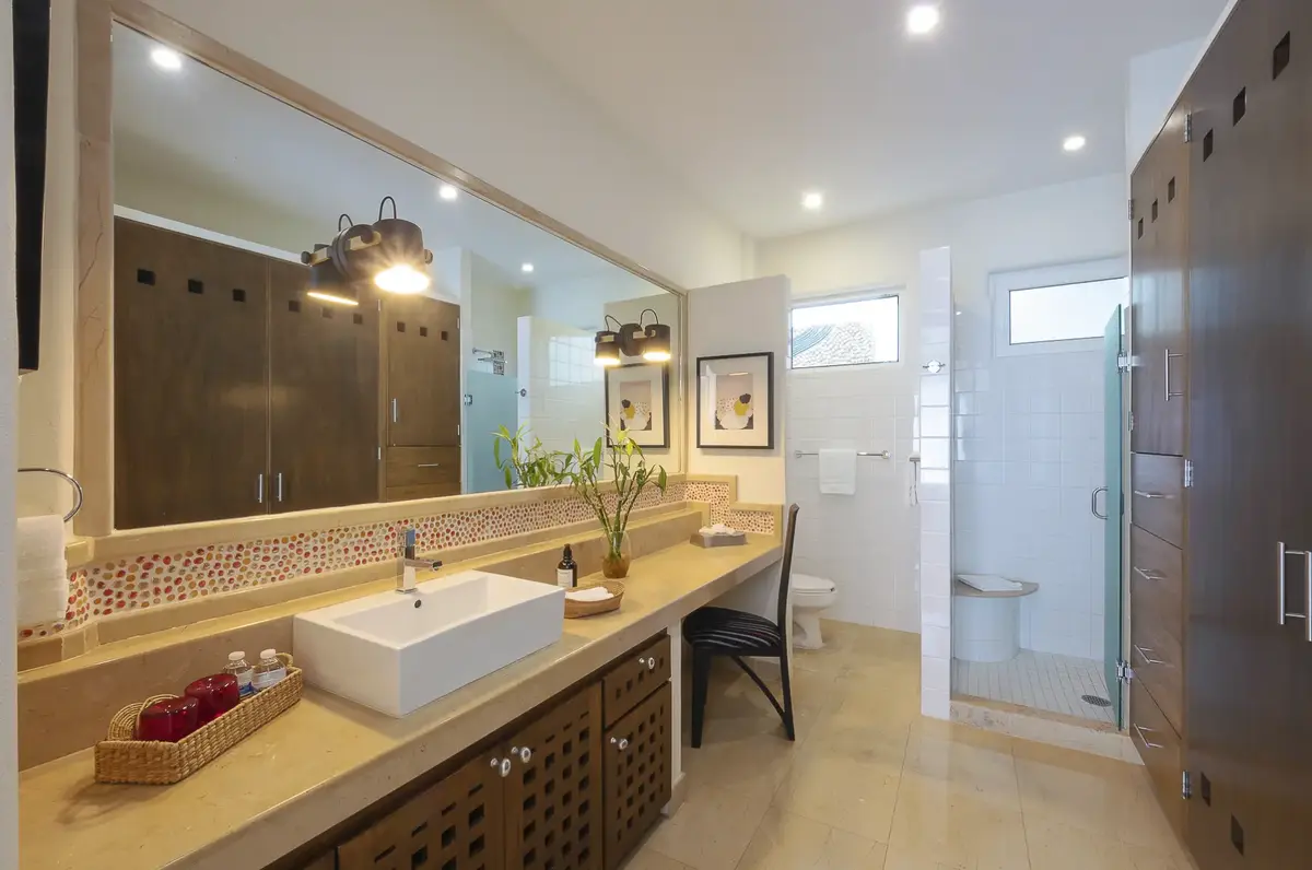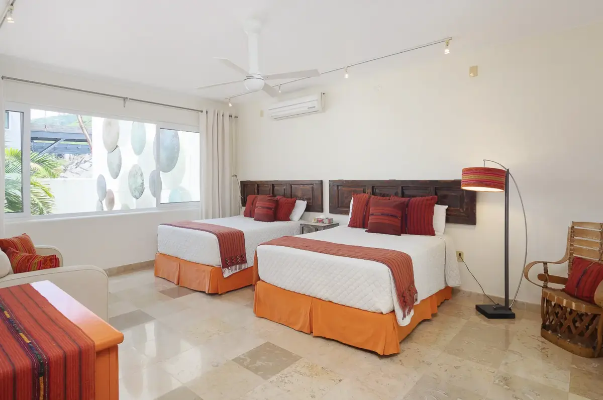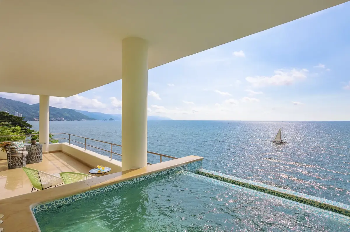 The clean elegant lines of Oceanfront Bal House Puerto Vallarta are juxtaposed with organic details, splashes of bright tropical colors, and some of the best local artists work, giving a sophisticated ambiance embracing the flavor of Mexico. The spacious villa has nine plus bedrooms, sleeps up to 20 persons, and is a perfect place for families, and groups of friends reconnecting or celebrating a milestone birthday or anniversary as well as corporate and wellness retreats. The villa includes all the comforts and amenities from an elevator, and a private screening room, most bedrooms have ocean views and terraces.