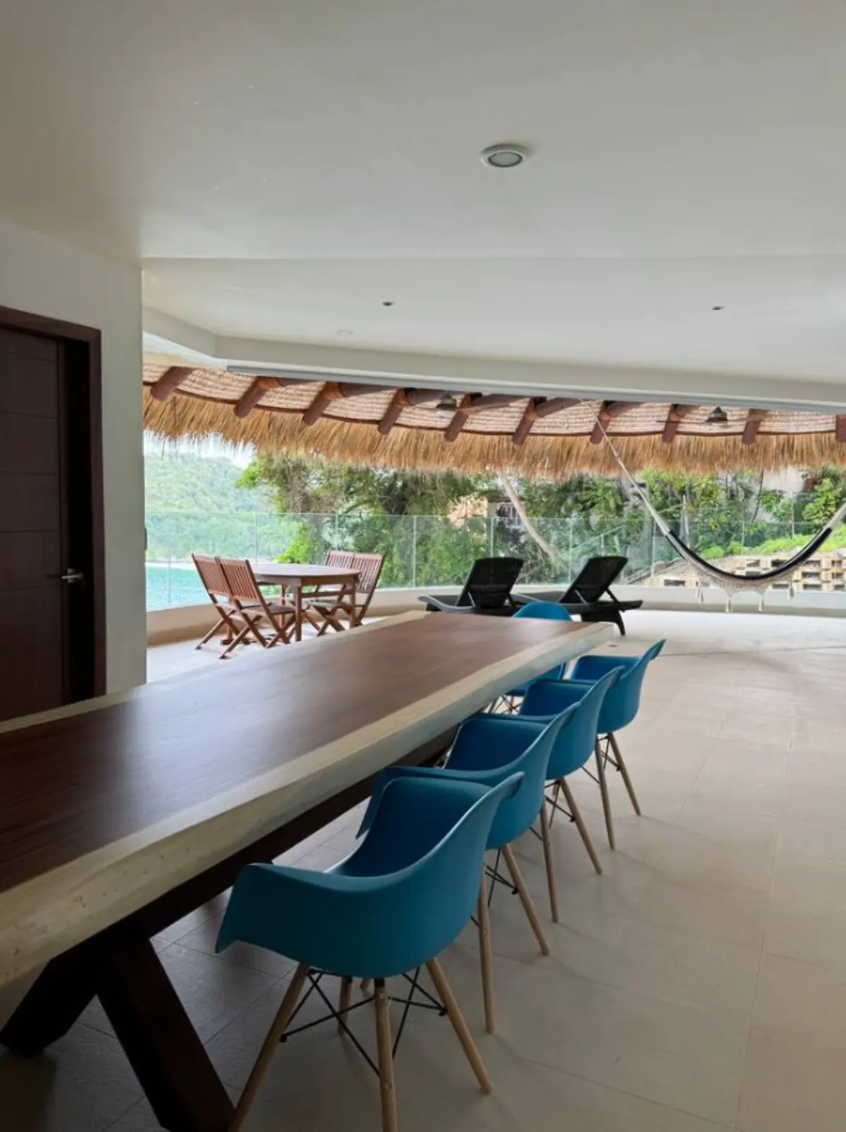 Disfruta la tranquilidad cerca del mar y relájate en esta escapada única en Palmetto Ixtapa Tower 1, un amplio departamento dúplex de dos niveles con vistas espectaculares al océano Pacífico. Perfecto para familias, grupos de amigos o celebraciones, este espacio combina comodidad, amplitud y un diseño práctico para que todos se sientan como en casa.