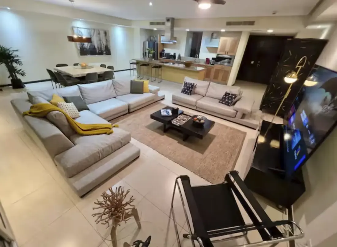 This spectacular apartment boasts stunning views from both the living room and the private balcony. It is perfectly distributed into 3 comfortable bedrooms, all equipped with Smart TVs for your entertainment: