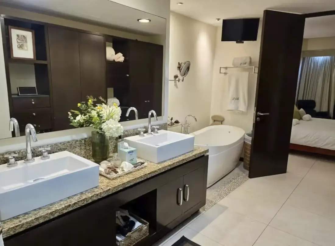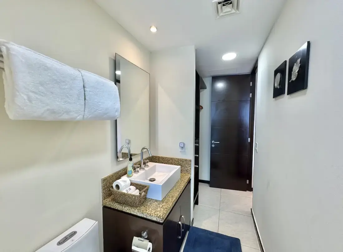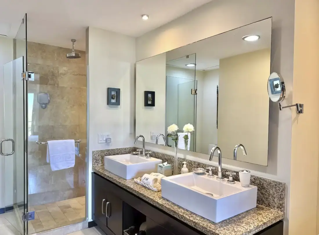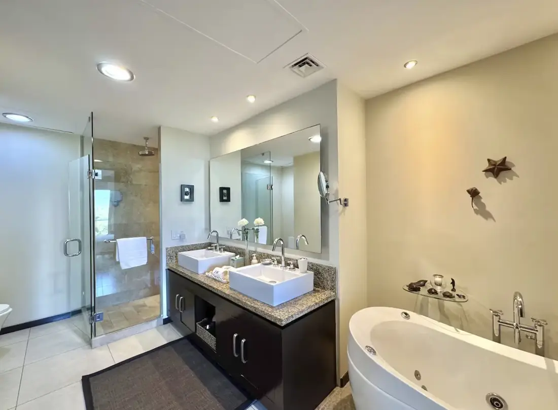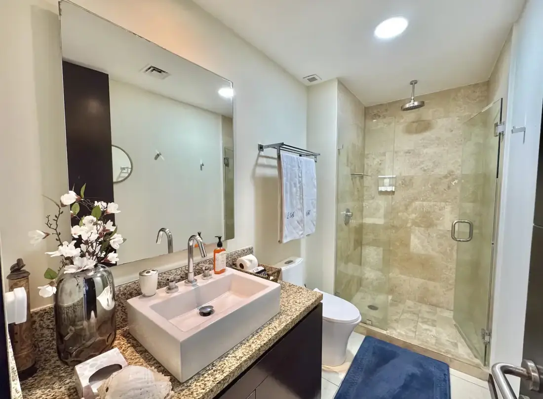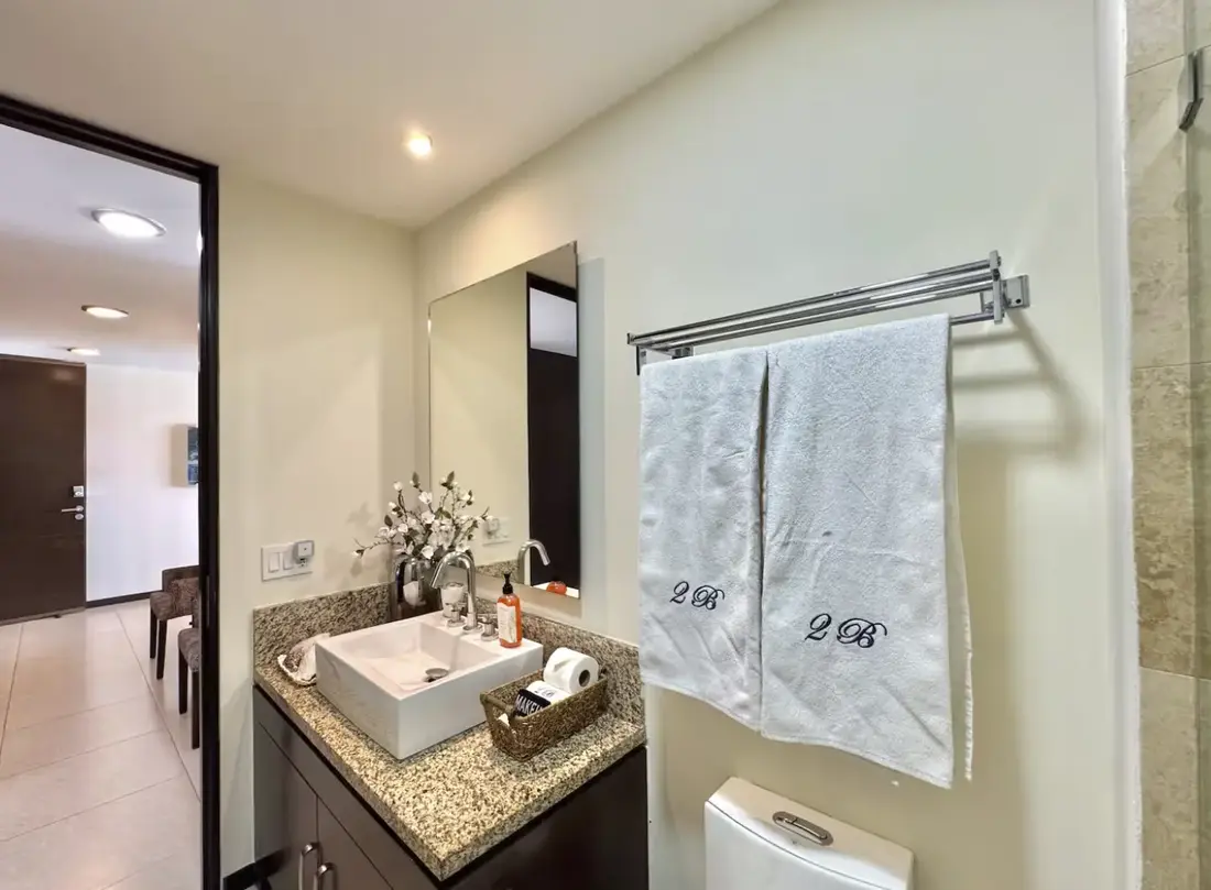We provide everything you need for a seamless stay. You’ll find a fully equipped kitchen ready for your favorite meals and an in-unit laundry center. We also include bath and pool towels for all guests, as well as complimentary shampoo, soap, and conditioner.