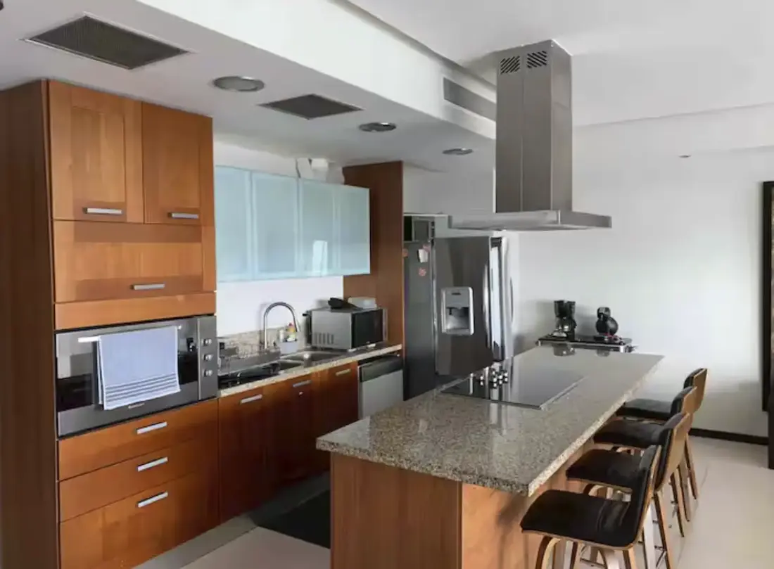 This elegant 3-bedroom, 3-bathroom apartment is crafted for absolute comfort. The open-concept living area allows you to enjoy the spectacular ocean views from inside. It features a fully equipped kitchen ready for your culinary needs, and the convenience of an in-unit washer and dryer. To ensure your complete comfort in the tropical weather, the apartment boasts powerful air conditioning in every single area.
