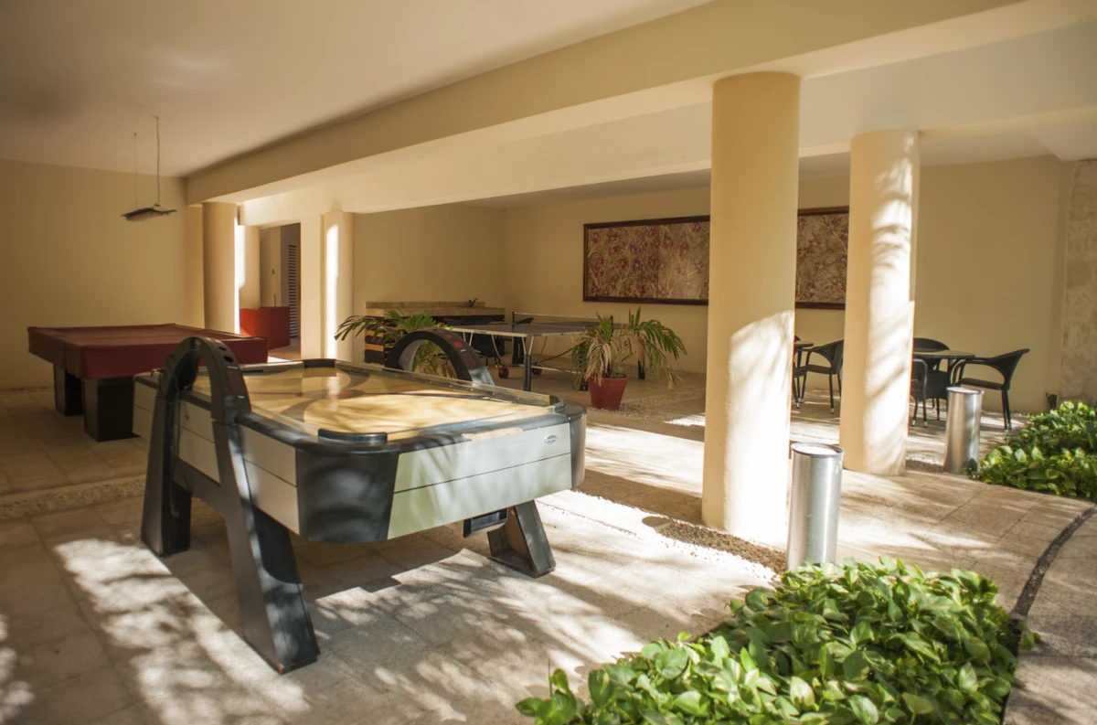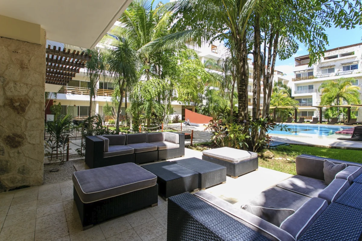 This condo stands out as the premier choice in downtown Playa del Carmen, with an incredible rooftop pool featuring lounge chairs, two jacuzzis, lush garden common areas, a gym, and a game room/media center with pool table and air hockey. Underground parking makes it easy even if you have two cars.