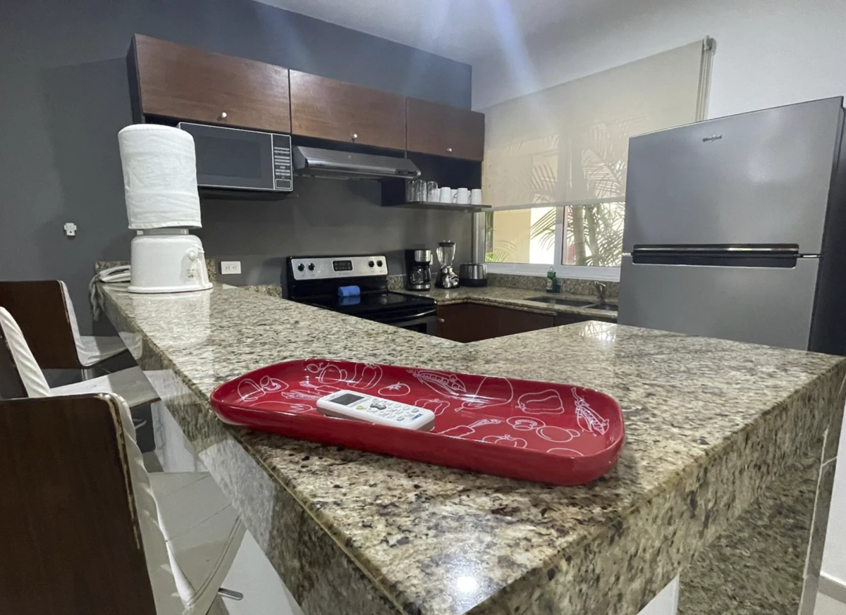 - Fully equipped kitchen (blender, coffee maker, microwave, refrigerator, toaster)