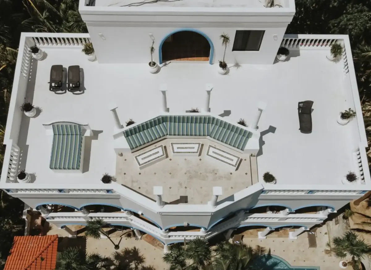 The Rooftop: An expansive terrace with a dedicated seating area and the highest observation point on Soliman Bay.