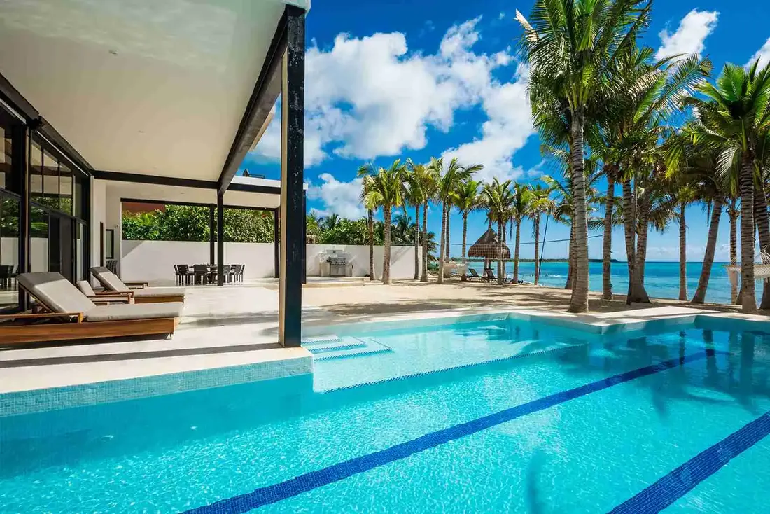 Soliman Bay Villa 42, a stunning seven-bedroom beachfront retreat nestled along the serene shores of Soliman Bay, just minutes north of vibrant Tulum in Mexico’s Riviera Maya. Framed by swaying palm trees, powdery white sands, and endless turquoise waters, this private beachfront villa offers unparalleled comfort, style, and seclusion. Perfect for travelers seeking the ultimate Riviera Maya escape, Villa 42 blends sophisticated elegance with the beauty of Tulum in Riviera Maya.