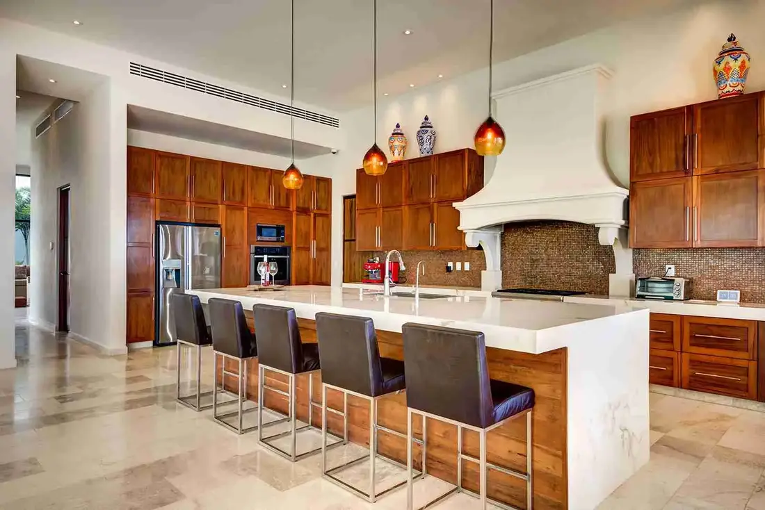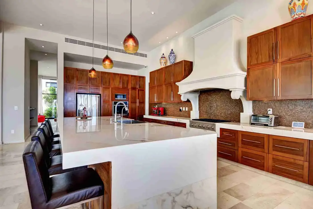 The villa’s open-concept design is ideal for large groups or family gatherings, while thoughtful extras like a home gym, steam room, media room, wet bar, and rooftop terrace ensure there’s always a quiet corner when you crave some privacy.