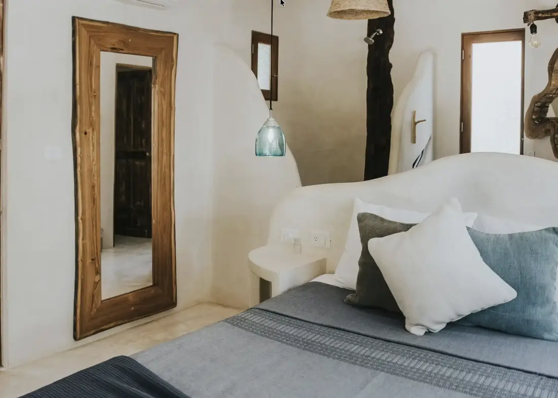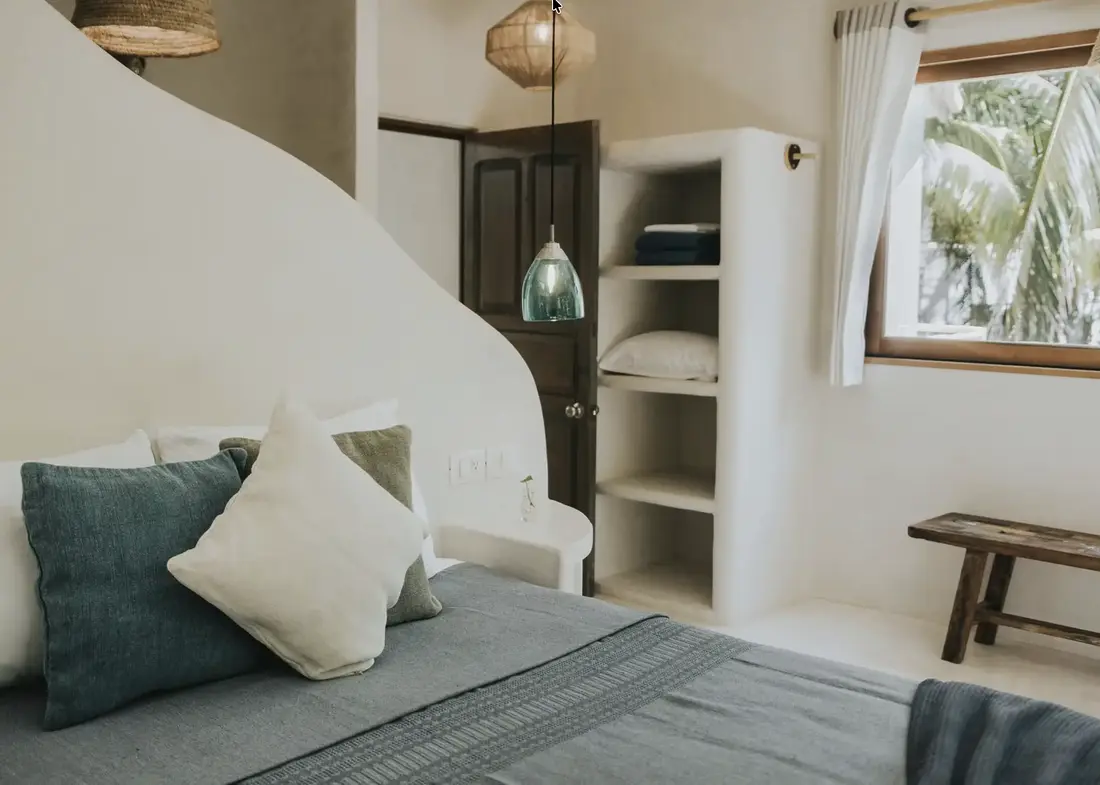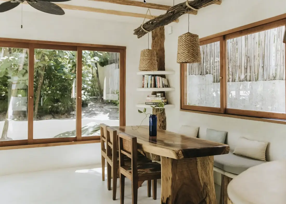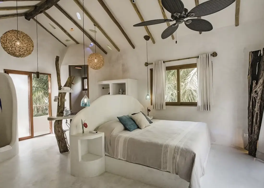Nestled among generous tree canopies on a naturally landscaped beachfront property, Tulum Beach Home 2 is a serene 3-bedroom villa that captures the laid-back soul of Tulum. Just steps from refreshing communal pools and the gorgeous white sands of the Caribbean, this home blends natural elements, artistic details, and effortless beach living—offering a private oasis while keeping you centrally connected to Tulum’s vibrant scene.