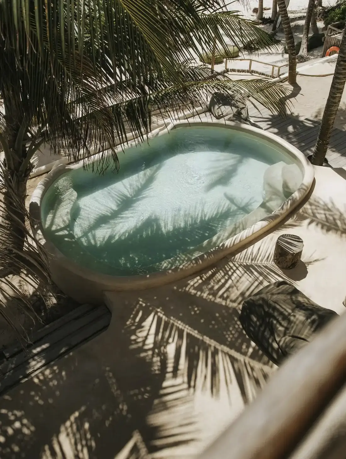 Step outside to your private pool and lanai with comfortable lounge furniture, or relax under natural palm shade on the beach with palapas, loungers, and complimentary sea kayaks. The villa’s prime location places you within walking distance of top beach clubs (Yaan Spa, Be Tulum, Chiringuito, Nomade), restaurants, spas, and yoga studios—no car needed.