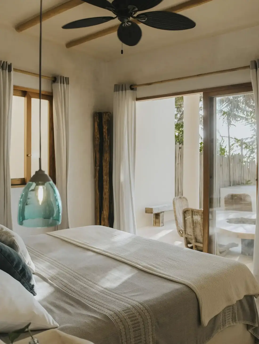 All bedrooms feature ceiling fans, air conditioning (eco-conscious nighttime use recommended), and premium comfort: