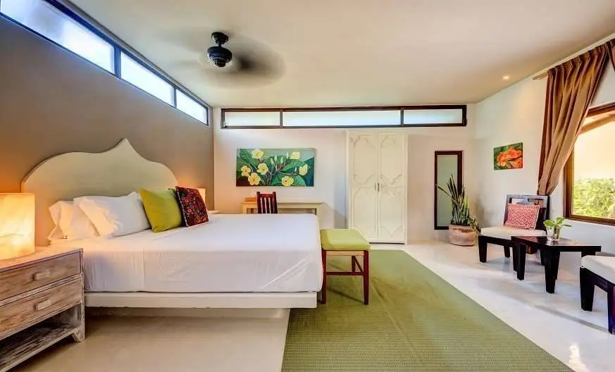 King-size bed, Air conditioning, Ceiling fan, Ensuite bathroom with shower, Ocean view, Private entrance, Private palapa, Safety box, Toiletries, Window screen