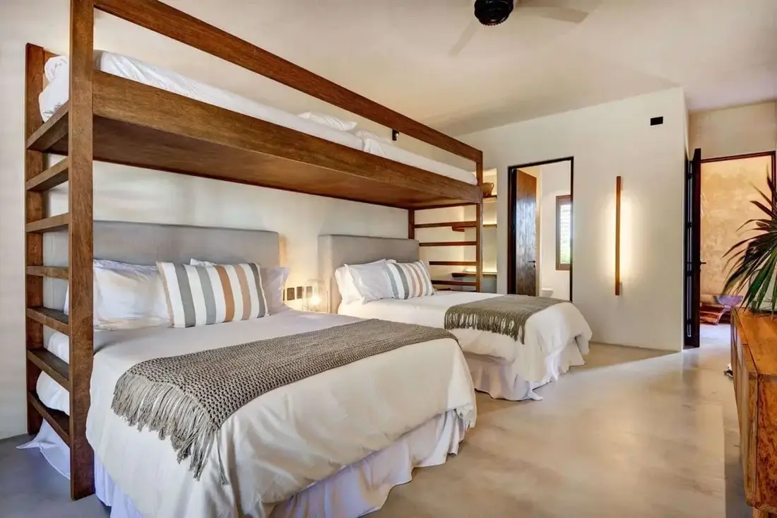 2 Queen beds, 2 Single bunk beds, Air conditioning, Ceiling fan, Ensuite bathroom with shower, Organic toiletries, Wifi access